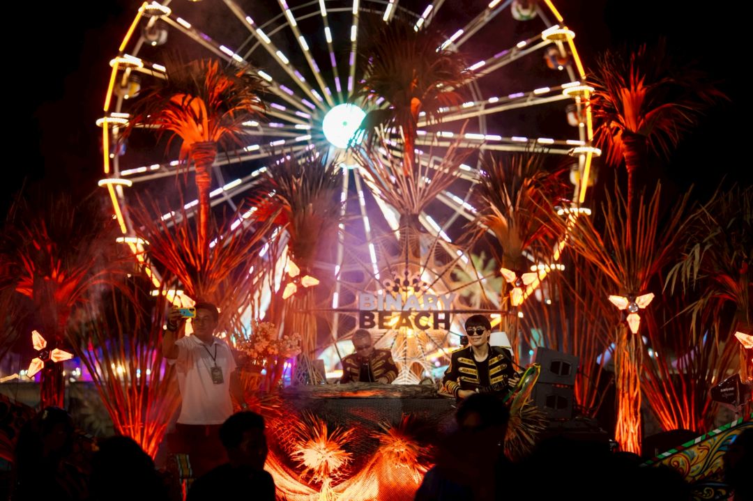 โซน Binary Beach ถูกสร้างสรรค์ขึ้นเพื่อให้ผู้ร่วมงานจากทั่วโลกได้สัมผัสนิยามใหม่ของการพักผ่อน ท่ามกลางบรรยากาศเฟสติวัลระดับโลก โดยหนึ่งในไฮไลต์สำคัญคือ Mini Tropical Stage ที่นำเสนอความสนุกในรูปแบบ “หมอลำซิ่งร่วมสมัย” ด้วยฝีมือของ ดีเจไทยระดับชั้นนำที่ผลัดเปลี่ยนหมุนเวียนกันมามอบความมันส์แบบเร้าใจสุดๆ ดึงดูดผู้ร่วมงานให้เข้ามาร่วมเต้นและสนุกไปด้วยกันอย่างต่อเนื่อง จนพื้นที่หน้าเวทีแน่นขนัดตลอดทั้งคืน สร้างสีสันและพลังความสนุกที่แตกต่างจากเวทีอื่นภายในงาน