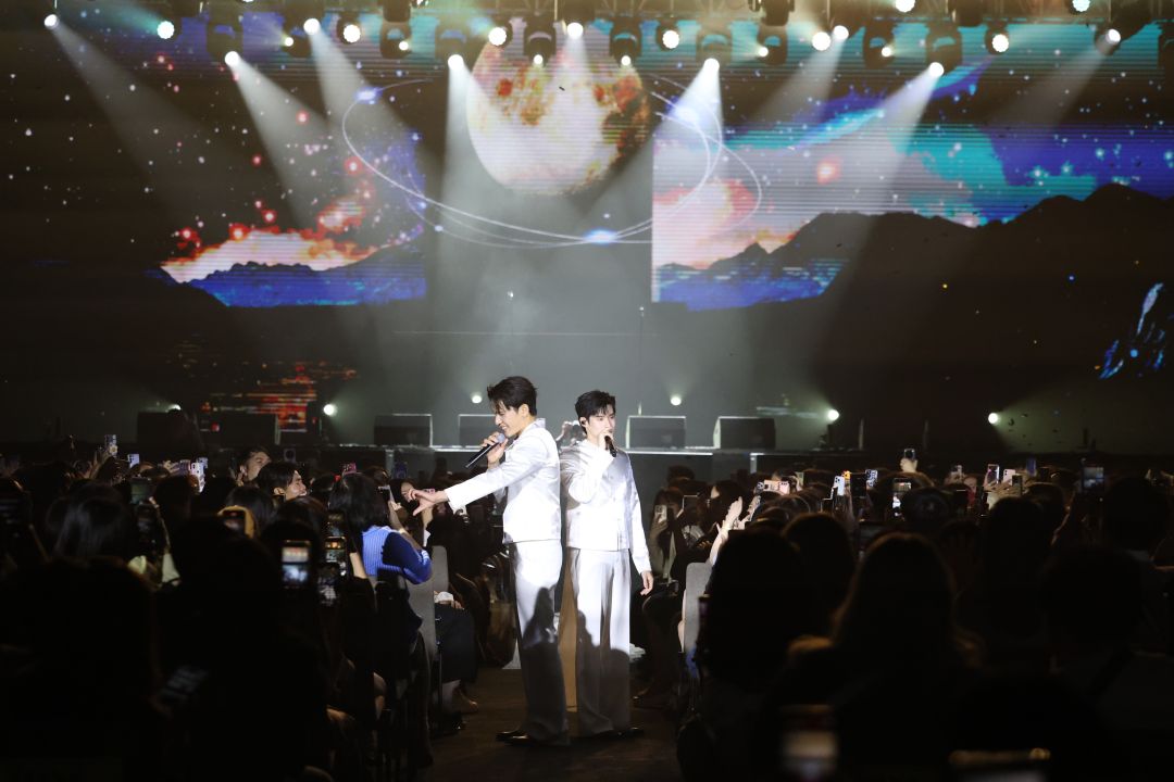 เปิดโชว์ด้วยคอนเซปต์ “Together to the Moon” ที่เปรียบเสมือนจุดเริ่มต้นของการเดินทางของ “เพิร์ล-พีค” ด้วยเพลง “รถไฟบนฟ้า” พร้อมที่จะพาแฟน ๆ ทุกคนสนุกด้วยไปด้วยกัน แถมยังขนโชว์สุดพิเศษที่บ่งบอกความตัวตนของทั้งคู่ได้ดีที่สุด เริ่มจาก “พีค” ที่หยิบเอาเพลงทำนองไทยเดิม อย่าง “ลาวดวงเดือน” มาร้องร่วมกับเพลง “ดวงเดือน” ผสมผสานได้อย่างสุดซึ้งและลงตัว ทางด้าน “เพิร์ล” ขอส่งความสนุกผสมกับความน่ารักในแบบฉบับของหนุ่มหน้ามล คนพังงา มาโชว์ในเพลง “ชวนน้องล่องใต้” ที่โชว์สกิลการร้อง-เต้น แถมควงกระบองไฟได้อย่างคาดไม่ถึงเลยทีเดียว แค่นั้นยังไม่พอ 2 หนุ่มยังขนโมเมนต์สุดฟินมาเรียกเสียงกรี๊ดจากแฟน ๆ ด้วยเกมสุดเอ็กคลูซีฟ ที่ดึงเอาความน่ารัก ขี้เล่นของ “เพิร์ล-พีค” ออกมาจนแฟน ๆ หยิบกล้องขึ้นมาแชะภาพกันรัวๆ แถมยังชวนผู้โชคดีขึ้นมาร่วมสนุก พร้อมรับของรางวัลสุดพิเศษติดไม้ติดมือกลับบ้านกันไป
