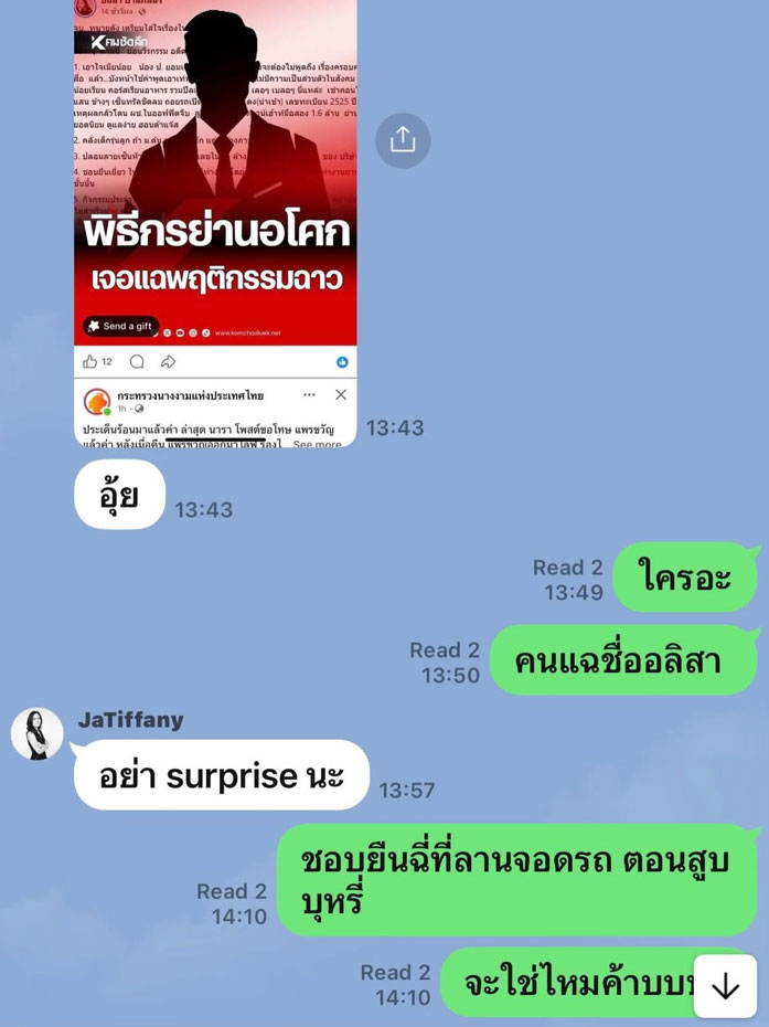 งานนี้ทำเอาสะเทือนไปถึงพิธีกรชื่อดัง อย่าง "อั๋น ภูวนาท คุนผลิน" เมื่อภรรยาสุดที่รัก “จ๋า อลิสา” ส่งข้อความสั้นๆ มาให้ โดยเจ้าตัวได้โพสต์แชทข้อความที่คุยกัน