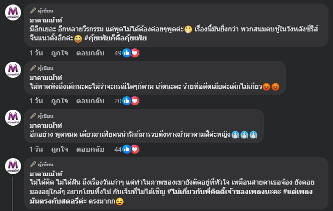 เพจยังทิ้งบอมบ์คำใบ้เพิ่มเติมว่า “มีอีกเยอะ อีกหลายวีรกรรม แต่พูดไม่ได้ ต้องค่อย ๆ พูดค่ะ เรื่องนี้มันยิ่งกว่าพวกสนมคบชู้ในวังหลังซีรีส์จีนแนวตั้งอีกค่ะ”
