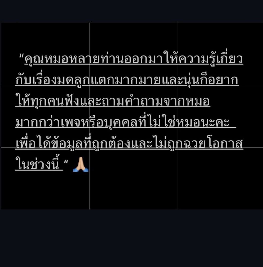 “คุณหมอหลายท่านออกมาให้ความรู้เกี่ยวกับเรื่องมดลูกแตกมากมายและนุ่นก็อยากให้ทุกคนฟังและถามคําถามจากหมอมากกว่าเพจหรือบุคคลที่ไม่ใช่หมอนะคะ เพื่อได้ข้อมูลที่ถูกต้องและไม่ถูกฉวยโอกาสในช่วงนี้”