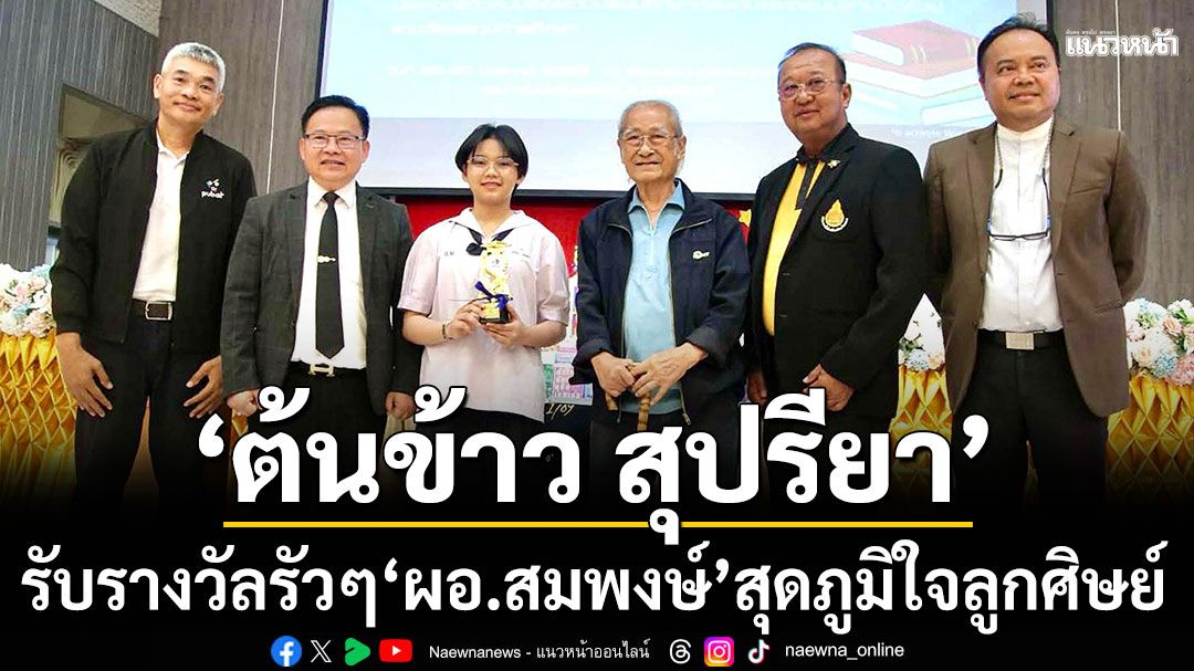 ล่าสุดยังได้รับรางวัล “เมล็ดพันธุ์แห่งปัญญา” ในงาน ”เปิดโลกนักอ่าน หนังสือคือเมล็ดพันธุ์แห่งปัญญา“ School Book Fair ครั้งที่ 1 ที่สมาพันธ์ผู้จำหน่ายหนังสือและสื่อการศึกษา จัดขึ้นระหว่างวันที่ 28-30 มกราคม 2569 ณ โรงเรียนกาญจนานุเคราะห์ โดย อ.เนาวรัตน์ พงษ์ไพบูลย์ ศิลปินแห่งชาติ และอดีตวุฒิสมาชิก เป็นผู้มอบรางวัลให้ แถมยังแต่งบทกวีสดๆ ให้น้องต้นข้าวได้ปลาบปลื้มใจด้วยข้อความว่า ‘เสน่ห์น้ำสำเนียง เสียงเมืองกาญจน์กล่อมกังวานไพเราะ เสนาะหล้าปลุกพลังเพลงไทย ชื่นใจประชาน้องต้นข้าว สุปรียา ตาอุดม ฯ’