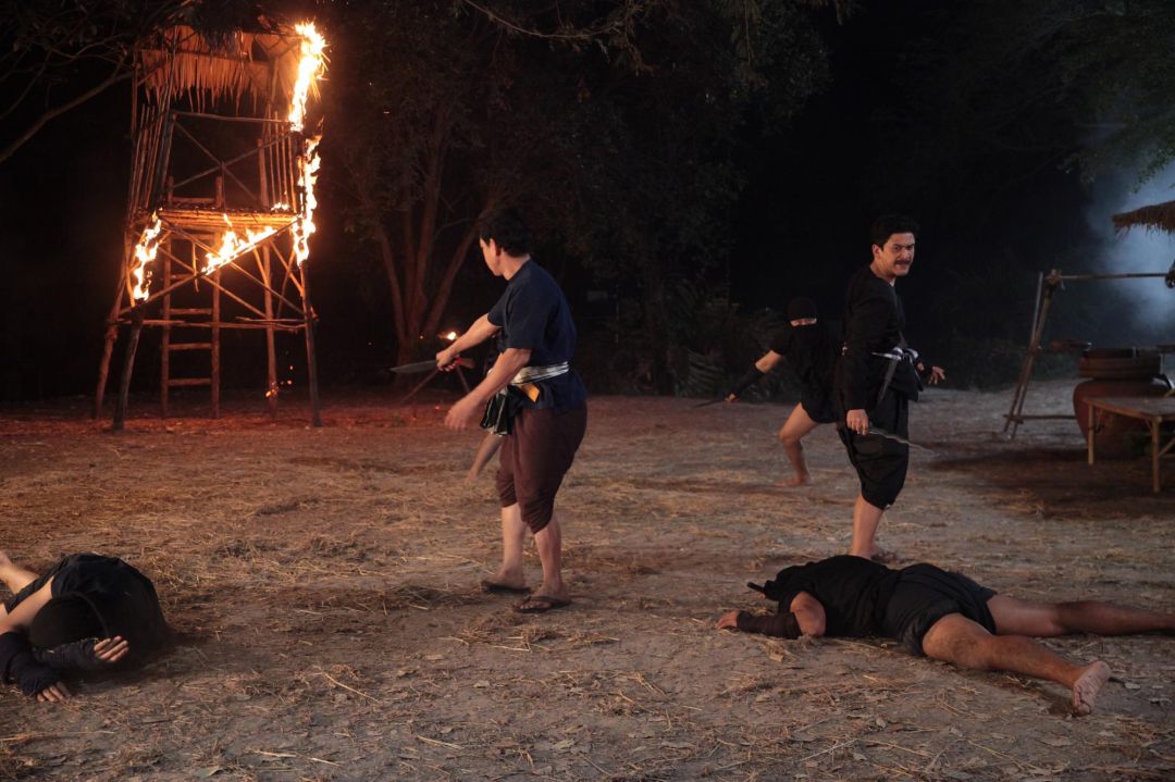 เป็นอีกหนึ่งฉากใหญ่ของเรื่องเลยก็ว่าได้ เมื่อชุมเสือ แตกทำให้ถูกพวกของทิม(วุตม์ สุรินทร) เข้ามาเล่นงาน เพราะมนต์บังตาที่เสือหวัด(ป๋อ ณัฐวุฒิ)ได้ร่ายคาถาเอาไว้ที่หน้าปากทางเข้าชุมเสือได้เสื่อมลง งานนี้รุ่นใหญ่เลยขอโชว์สกิลบู๊ให้สมกับฉายาพระเอกคิวบู๊เสียหน่อย แท็กทีมตี๋ ดอกสะเดา บู๊ปะทะกับทีมสตั๊นรุ่นน้อง ฉากนี้ใช้เวลาในรายการซ้อม และถ่ายทำไปถึง 4 ชั่วโมงเต็ม ด้วยความที่เป็นฉากบู๊ นักแสดงหลักทีมสตั๊น และนักแสดงสมทบทุกคนต้องซักซ้อมเพื่อความแม่นยำ แถมยังมีการถ่ายทำด้วยกล้องตัวเดียวเป็นระยะเวลานานเพื่อให้ได้ภาพที่สมจริง งานนี้ 2 นักแสดงรุ่นใหญ่ ป๋อ-ตี๋ ทุ่มสุดตัว ซักซ้อมคิวบู๊เข้าออกกันแบบเป๊ะๆ จนผู้กำกับคุ้ยยกนิ้วให้ แถมยังเผยอีกว่า ถ้าฉากนี้ออกไป ต้องเกิดคู่จิ้นคิวบู๊คู่ใหม่แน่นอน