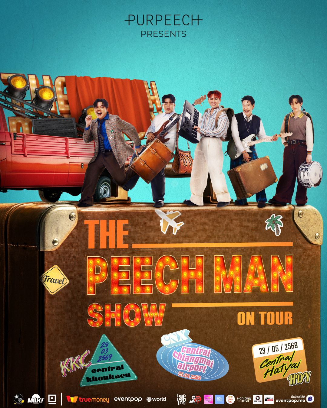 ไม่ปล่อยให้แฟน ๆ รอนาน ทั้ง 5 หนุ่มกลับมาพร้อมข่าวดี! หลังจากแอบสปอยไปว่ากำลังจะจัดคอนทัวร์ 3 ภาค ล่าสุดต้นสังกัดได้ปล่อยโปสเตอร์อย่างเป็นทางการกับ “THE PEECH MAN SHOW ON TOUR” ที่ครั้งนี้พวกเขาจะขนทัพความสนุกพร้อมบทเพลงที่คุณรักไปเสิร์ฟกันถึงที่ทั่วไทย เปิดฉากด้วย 3 จังหวัดหัวเมือง ได้แก่ ขอนแก่น เชียงใหม่ และหาดใหญ่ โดยมีรายละเอียด ดังนี้