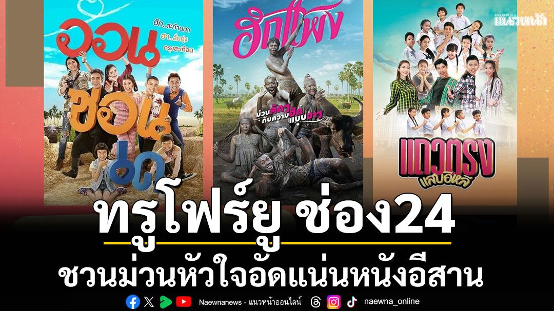 เริ่มตั้งแต่ 16.30 น. กับ “ออนซอนเด” ภาพยนตร์รักอีสานอารมณ์ดีของ ต่ง (เบิ้ล ปทุมราช), รวย (ก้อง ห้วยไร่) และ อ็อดแอด (แซ็ค ชุมแพ) สามหนุ่มบ้านทุ่งที่ออกตามหาคู่ชีวิต ท่ามกลางอุปสรรคทางสังคมและความวุ่นวายจากหนุ่มเมืองกรุง ต่อด้วยเวลา 18.30 น. “ฮักแพง” เรื่องราวความฝัน เสียงเพลง และหัวใจของ โต้น (เบิ้ล ปทุมราช อาร์สยาม) และ แสบ (แซ็ค ชุมแพ) ที่ต้องเผชิญรักสามเส้าเมื่อ พิม (ลำไย ไหทองคำ) ลูกสาวผู้ใหญ่บ้านกลายเป็นศูนย์กลางของความขัดแย้ง ช่วงไพรม์ไทม์ 21.00 น. สนุกไปกับ “แถวตรง แสบอีหลี” ภาพยนตร์อินดี้ที่สะท้อนวัฒนธรรมพื้นบ้านอีสานอย่างมีชีวิตชีวา ก่อนส่งต่ออารมณ์สู่ดราม่าเข้มข้น “แสงสุดท้ายของอีเหี่ยน” เวลา 23.00 น. เรื่องราวการดิ้นรนของ อีเหี่ยน (นรีรัตน์ สีหราชนิเวศน์) หญิงสาวผู้เข้ากรุงเพื่อชดใช้หนี้แทนแม่ จนได้มาพบกับ ปลัดลิขิต (พศิน เรืองวุฒิ) ที่เข้ามาเปลี่ยนชะตาชีวิต ติดตามรับชมทั้งหมดได้ในวันอาทิตย์ที่ 8 กุมภาพันธ์ 2569 ทาง ทรูโฟร์ยู ช่อง 24 และรับชมออนไลน์ที่ https://true4u.com/live/