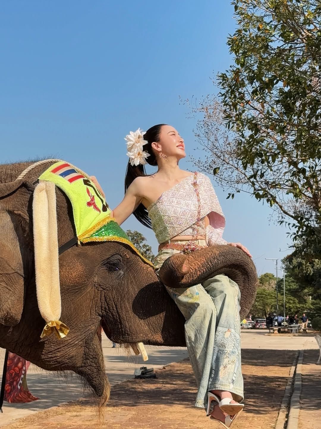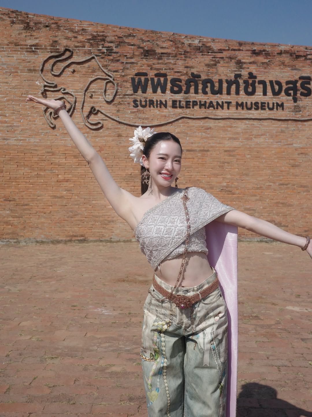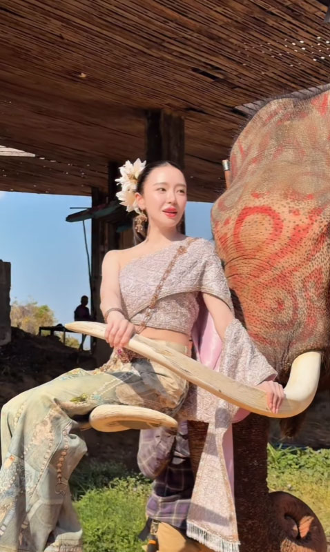 งานนี้มายด์ไม่พลาดแวะเยี่ยมน้องช้าง สัตว์สัญลักษณ์ประจำจังหวัด พร้อมจัดเต็มลุคตามเทรนด์ สวมสไบคู่กับกางเกงยีนส์ หน้าผมเป๊ะ ถ่ายทอดบรรยากาศความเป็นไทยผสมความเก๋ได้อย่างลงตัว ก่อนจะถ่ายคลิปคู่กับช้างตัวใหญ่ และโพสต์ลงโซเชียลพร้อมแคปชั่นว่า “มาช้า แต่หมวยมาไกลนะคะ หวังว่าทุกคนจะหลงรักน้องๆเหมือนกันน้า #สุรินทร์ #AmazingThailand”