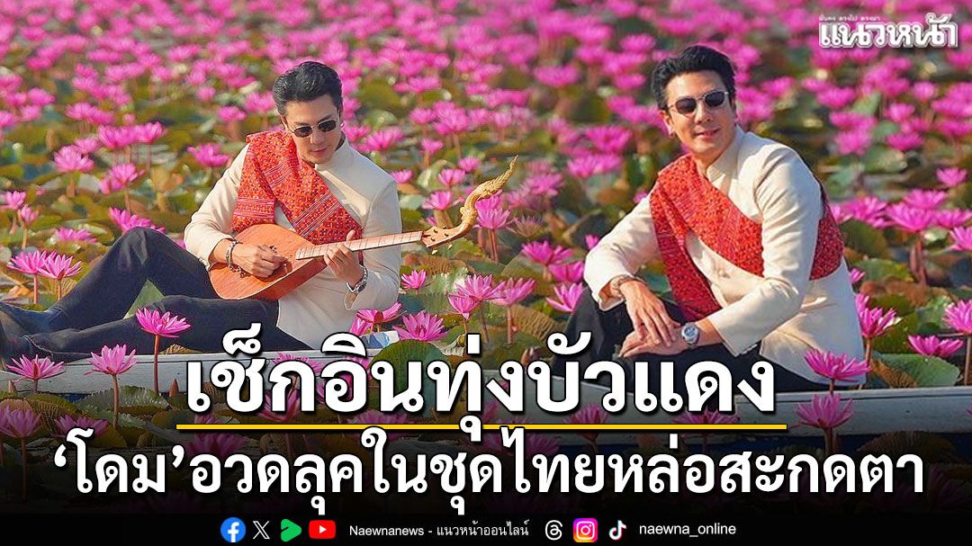 นอกจากความสวยงามของทุ่งบัวสีชมพูที่บานสะพรั่งสะกดสายตาแล้ว อีกหนึ่งสิ่งที่ถูกพูดถึงอย่างมากในโลกโซเชียลคือ ลุคชุดไทยประยุกต์ ของโดม ที่ดูหล่อเนี๊ยบ อบอุ่น และเข้ากับบรรยากาศเป็นอย่างดี ส่งผลให้โพสต์ดังกล่าวมียอดไลก์และคอมเมนต์พุ่งขึ้นอย่างรวดเร็ว