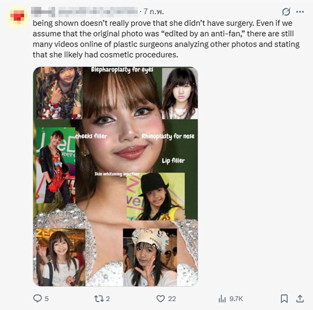 อีกทั้งยังมีการตั้งคำถามอีกว่า "ไอดอลคนนี้ ที่ถูกกล่าวหาว่าทำศัลยกรรมตกแต่งทั้งใบหน้าและร่างกาย เป็นพรีเซนเตอร์ของชิเซโด้ใช่หรือไม่? ฉันคิดว่าฉันคงไม่มีทางดูดีแบบนี้ได้เลยถ้าใช้เครื่องสำอางของชิเซโด้ และฉันก็ไม่อยากทำด้วย เสียดายจัง" จนกลายเป็นประเด็นถกเถียงกันสนั่นเอ็กซ์