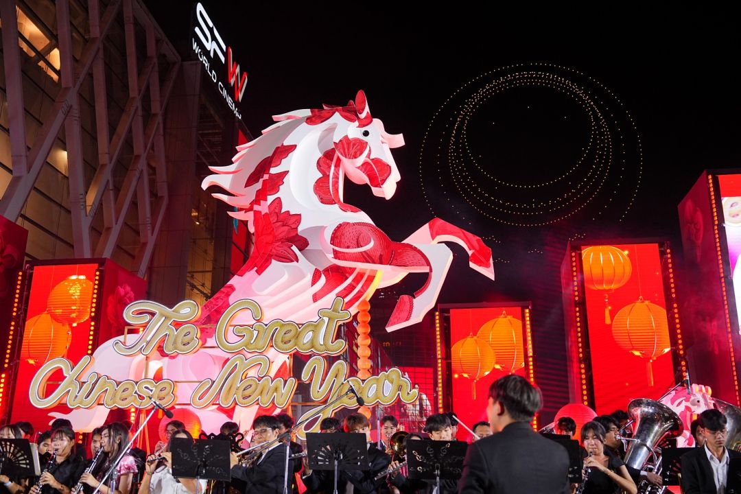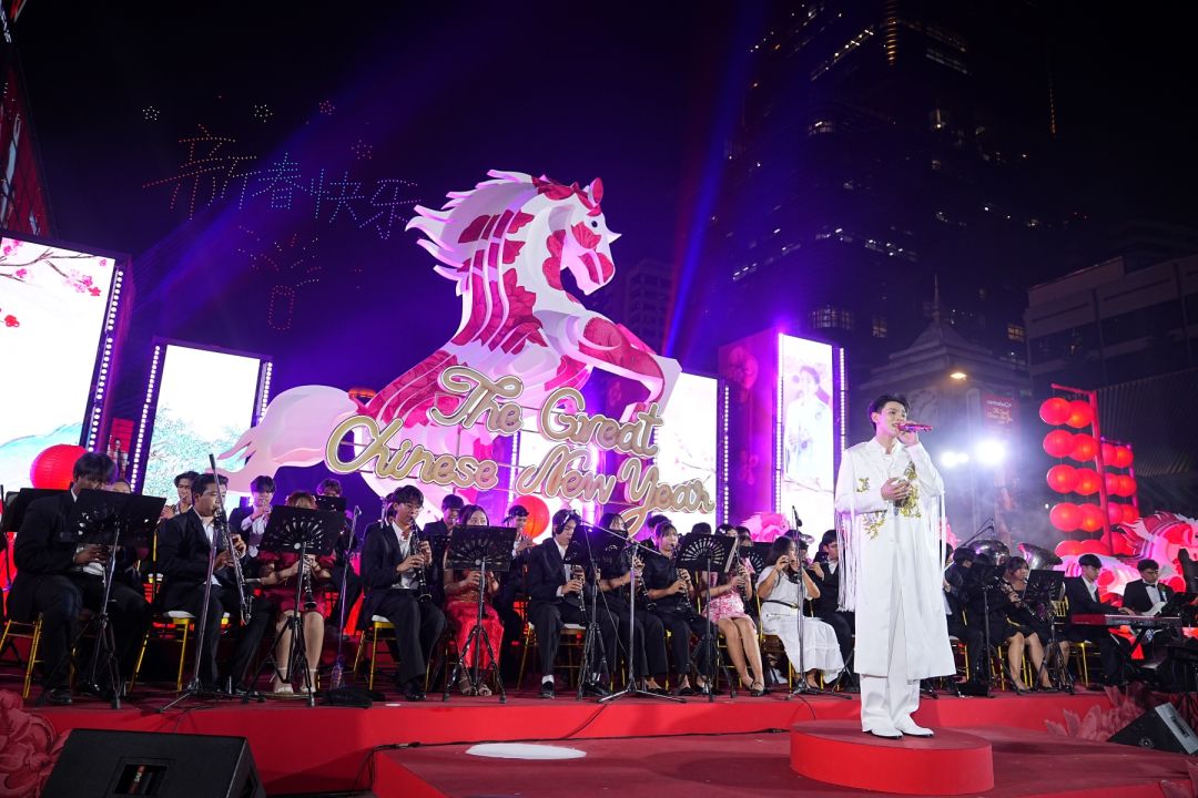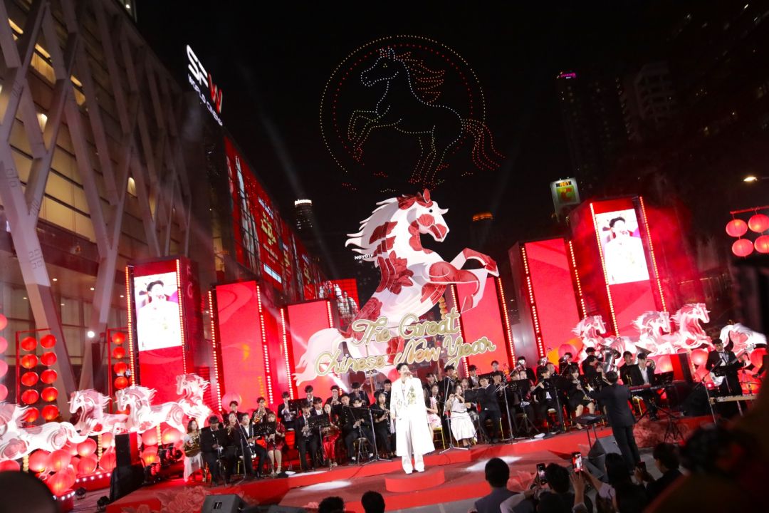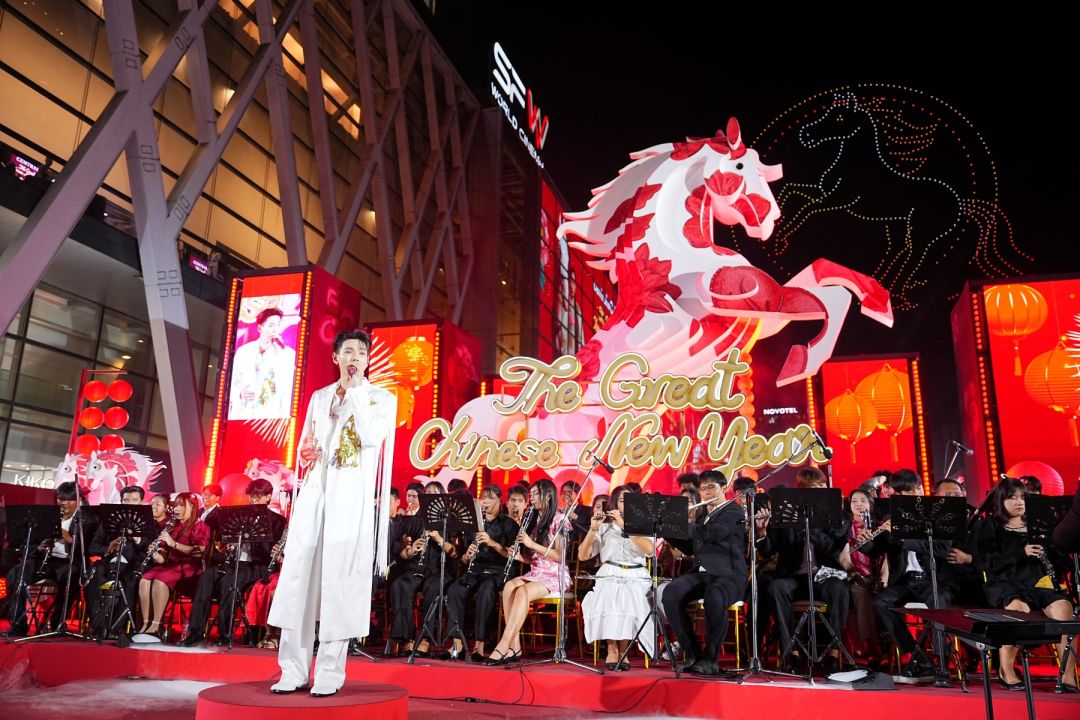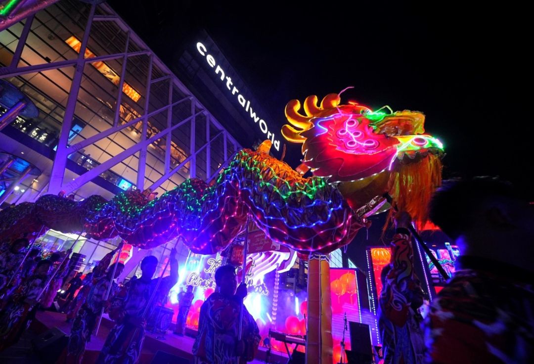 เซ็นทรัลเวิลด์ ได้เนรมิตลานหน้าศูนย์การค้าฯ ให้เป็นเวทีที่สร้างปรากฏการณ์ฉลองเทศกาลตรุษจีนยิ่งใหญ่ระดับโลก เปิดฉากด้วย 3 โชว์พิเศษและศิลปิน T-POP คนแรกของไลน์อัปอย่าง “ต้าห์อู๋ พิทยา” กับสเตจ The Grand Symphony of Blessings ในรูปแบบ Live Session ร่วมกับวงออเคสตร้า VRU Wind Symphony จากมหาวิทยาลัยราชภัฎวไลยอลงกรณ์ ในพระบรมราชูปถัมภ์ กว่า 50 ชีวิต ถ่ายทอดบทเพลงจีนในตำนานตลอดกาล ‘เจ้าพ่อเซี่ยงไฮ้’ ต่อด้วย ‘Jumping Machine’ และเพลง ‘สายลมจันทรา’ ควบคู่ไปกับสเตจโชว์บนเวทียังมีอีกหนึ่งวินาทีประวัติศาสตร์ เมื่อท้องฟ้าเหนือใจกลางย่านราชประสงค์ถูกเนรมิตด้วยโชว์โดรนกว่า 700 ลำ ในชุด “Ascension of the Celestial Dragon” ถ่ายทอดพลังมงคลจาก “ม้าสวรรค์” สู่ผู้ครองฟ้า “มังกรสวรรค์” ส่งต่อความเฮงตลอดปี โดยทีม Skyedge ระดับแนวหน้าของประเทศไทย และสิ่งที่ทำเอาเซอร์ไพรส์เรียกเสียงกรี๊ดกระหึ่ม เมื่อเกสต์คนพิเศษ “ออฟโรด กันตภณ” ปรากฏตัวบนเวที เพื่อเก็บภาพความประทับใจร่วมกัน สร้างโมเมนต์สุดประทับใจให้เหล่านับดาว* และผู้ชมทั่วโลกตั้งแต่วินาทีแรก