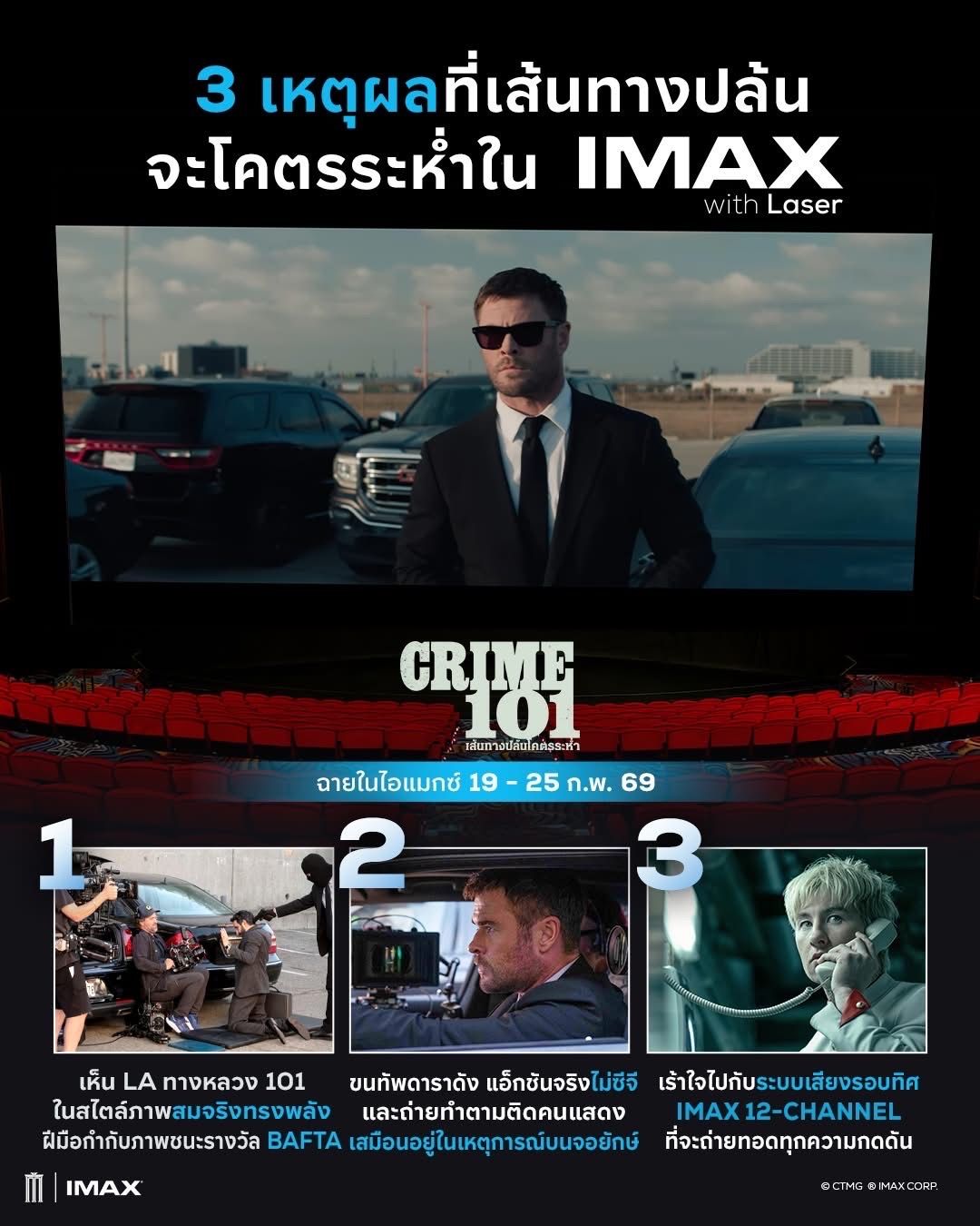 Crime 101 ฉายในIMAX เสียงต้นฉบับ/ซับไทย : พารากอน ซีนีเพล็กซ์, เมเจอร์ รัชโยธิน, ควอเทียร์ ซีเนอาร์ต, ไอคอน ซีเนคอนิค, เมเจอร์ เซ็นทรัล ปิ่นเกล้า, เมเจอร์ เซ็นทรัล เชียงใหม่, เอสพลานาด-แคราย, บางกะปิ ซีนีเพล็กซ์, เมกา ซีนีเพล็กซ์ และ เวสต์เกต ซีนีเพล็กซ์ ตั้งแต่ 19 - 25 ก.พ. 69ซื้อตั๋วล่วงหน้าที่ : Major App >>> https://majorcineplex.app.link/Esvc5SyN9Zb
