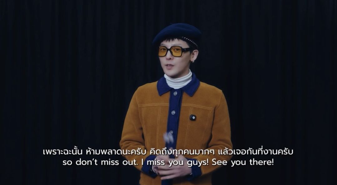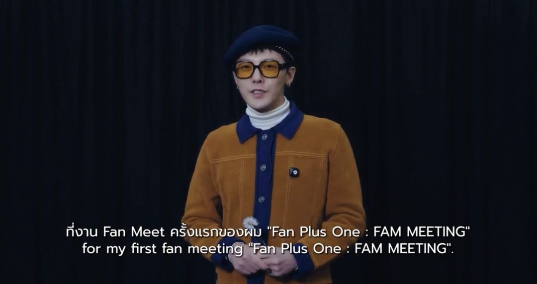 ก่อนที่หนุ่ม "G-DRAGON" จะลัดฟ้ามาหาแฟน ๆ ชาวไทยในงานแฟนมีตติ้ง หนุ่ม "G-DRAGON" ได้ประเดิมงานแฟนมีตติ้งที่กรุงโซล ประเทศเกาหลี เมื่อวันที่ 6-8 กุมภาพันธ์ ที่ผ่านมา ทั้งหมด 3 รอบ ทั้งโชว์ร้อง โชว์เต้น แสง สี เสียง พร้อมชาเลนจ์สุดน่ารัก แบบจัดเต็มไม่มีกั๊ก เรียกได้ว่าฟินกันสุด ๆ เลยทีเดียว ก่อนที่หนุ่ม "G-DRAGON" จะบินลัดฟ้ามาเจอทุก ๆ คน ก็ไม่พลาดที่จะขอส่งข้อความถึงแฟน ๆ ชาวไทย "สวัสดีครับ ผมเองครับ จีดราก้อน ผมกำลังจะเดินทางไปพบทุก ๆ คน ที่งาน Fan Meet ครั้งแรกของผม "Fan Plus One : FAM MEETING" ซึ่งงานนี้ ทุกคนจะได้พบกับอีกมุมนึงของผม ที่ทุกคนไม่เคยได้เห็นในคอนเสิร์ต เพราะฉะนั้น ห้ามพลาดนะครับ คิดถึงทุกคนมาก ๆ แล้วเจอกันที่งานครับ 'ผมรักแฟนชาวไทยมาก ๆ ครับ' บ๊ายบาย!