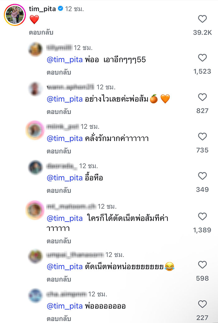 หวานไม่พัก! ทิม พิธา โผล่คอมเมนต์หัวใจใต้รูป ก้อย อรัชพร ทำแฟนๆ แซวสนั่นโซเชียล ใครก็ได้ช่วยตัดเน็ตพ่อที