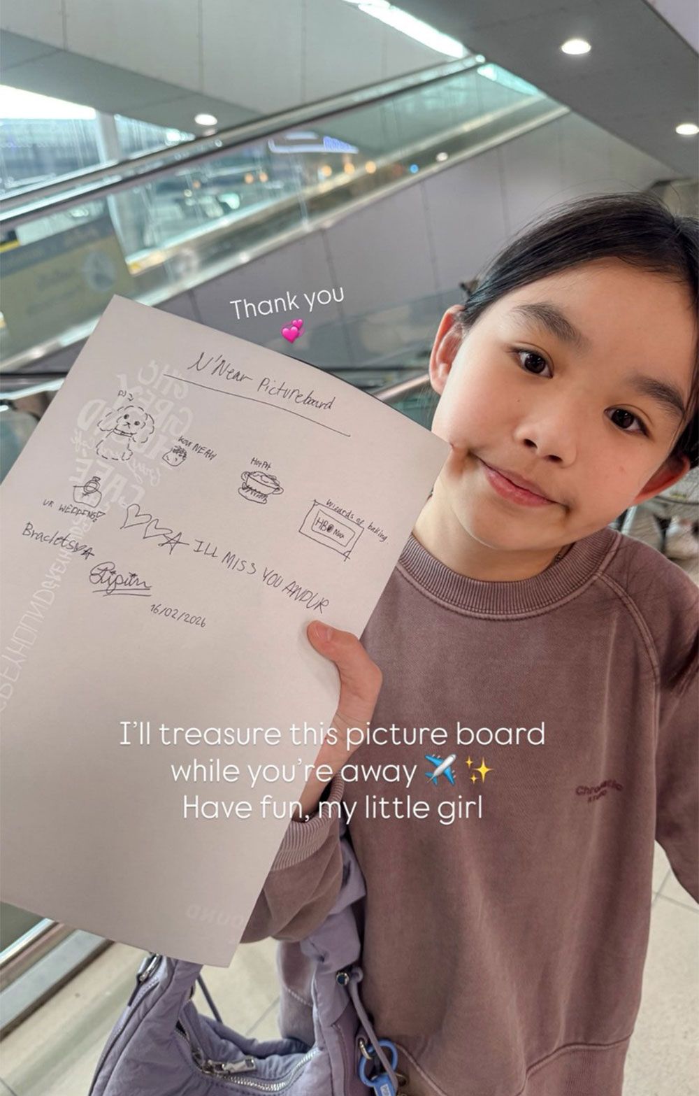 ทางแม่ต่าย ชุติมา ได้โพสต์โมเมนต์ผ่านทางไอจีสตอรีความประทับใจ เป็นภาพของลูกสาว น้องพิพิม พร้อมแคปชั่น "I'll treasure this picture board while you're away. Have fun, my little girl." (แม่จะเก็บรักษากระดานรูปภาพนี้ไว้อย่างดีที่สุดในตอนที่หนูไม่อยู่ ขอให้สนุกนะจ๊ะ ลูกสาวตัวน้อยของแม่)