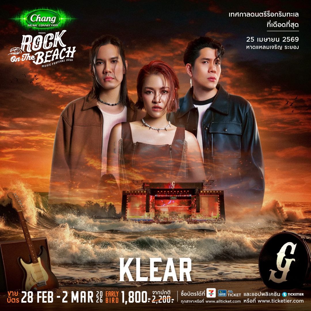 นอกจากความเดือดบนเวที เทศกาลดนตรีร็อกริมทะเลครั้งนี้จะไม่เหมือนที่ผ่านมา ทุกคนจะได้รับประสบการณ์ความร็อกที่เต็มไปด้วยพลังความสนุกถึงขีดสุด แล้วมาพิสูจน์กันว่าอุณหภูมิเพลงร็อกกับหาดทะเล อะไรจะร้อนแรงกว่ากัน ชาวร็อกที่ยังไม่มีบัตร ระวังจะคุยกับเพื่อนไม่รู้เรื่อง เพราะงานนี้ "ของจริง" เขาไปรวมตัวกันที่ระยอง! ในงาน Chang Music Connection presents Rock On The Beach 2026 เริ่มจำหน่ายบัตร Early Bird ราคา 1,800 บาท จากปกติ 2,200 บาท เพียง 3 วันเท่านั้น ตั้งแต่ วันที่ 28 กุมภาพันธ์ - 2 มีนาคม 2569 ที่ Counter Service All Ticket ในร้าน 7-Eleven ทุกสาขาทั่วประเทศ www.allticket.com และแอปพลิเคชั่น Ticketier หรือ www.ticketier.com สามารถติดตามรายละเอียดเพิ่มเติมได้ที่ Facebook, IG, TIKTOK : GFESTTH