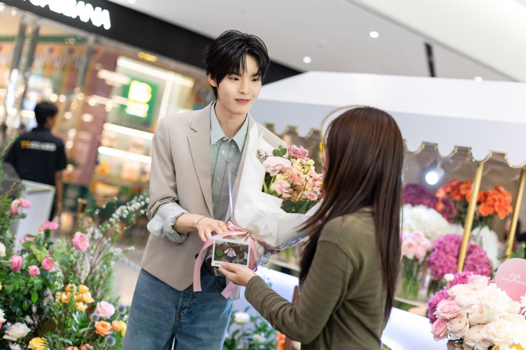 นอกจากจะมอบรอยยิ้มและทักทายแฟนๆ อย่างเป็นกันเองแล้ว หนุ่มตาต้ายังเตรียมเซอร์ไพรส์พิเศษด้วยการมอบดอกไม้แทนคำขอบคุณให้กับแฟนๆ อย่างใกล้ชิด สร้างโมเมนต์อบอุ่นหัวใจที่ทำเอาเสียงกรี๊ดและเสียงเชียร์ดังกระหึ่มทั่วพื้นที่ กลายเป็นอีกหนึ่งภาพความประทับใจที่เติมเต็มเทศกาลแห่งความรักได้อย่างสมบูรณ์แบบ