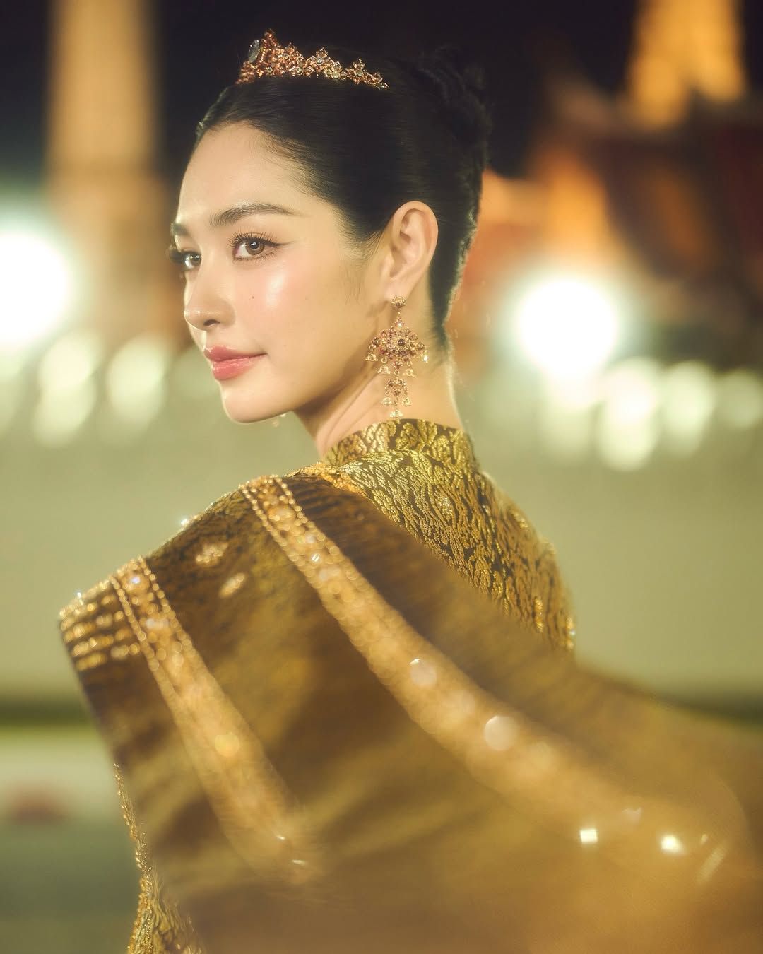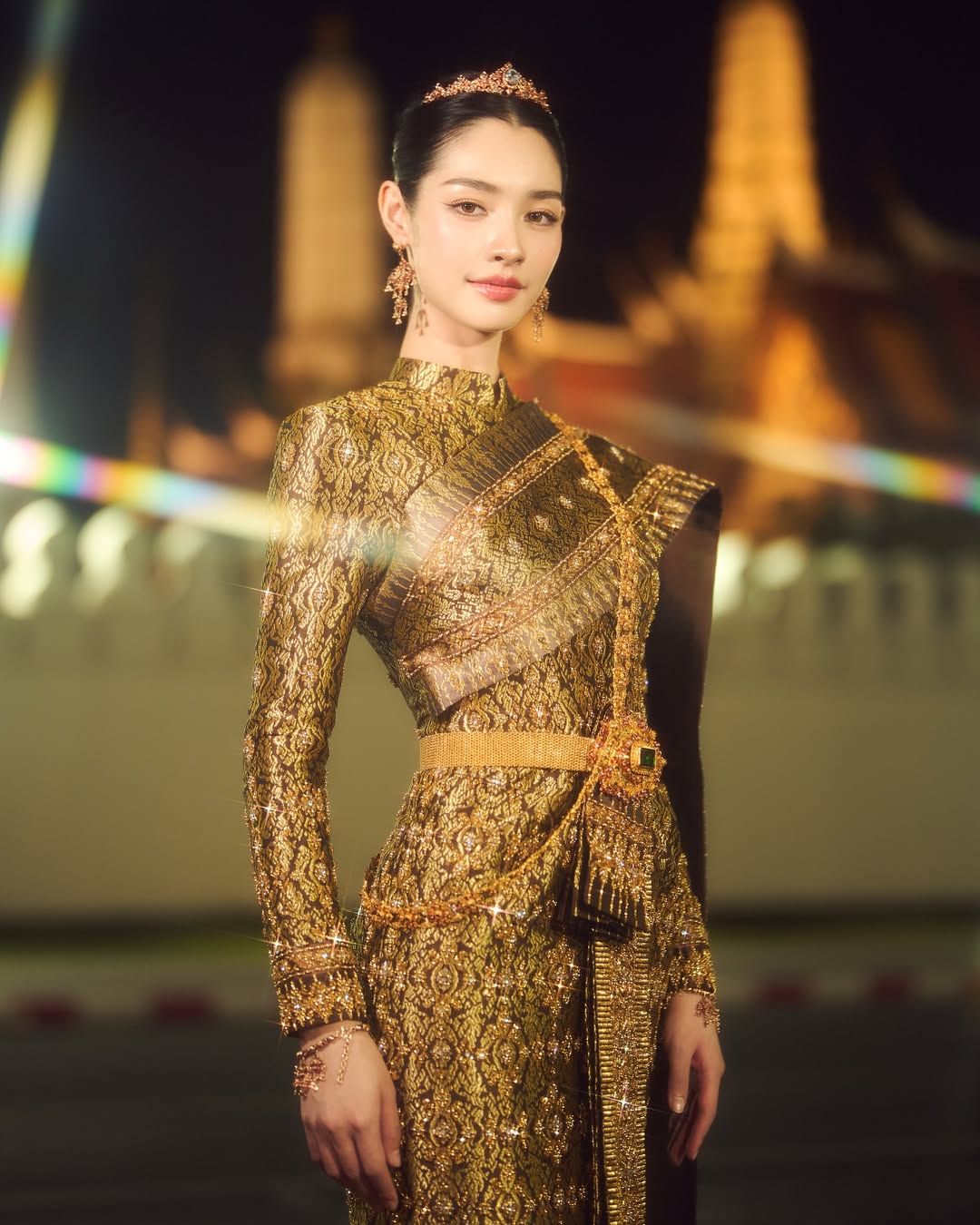 ส่องลุคใหม่ มิ้นท์ รัญชน์รวี จัดเต็มชุดไทยสีทองสุดอลังการ เดินกลางกรุงยามค่ำคืน ออร่ากระจายจนแฟนๆ แห่ชมสวยสะกดตา ทะลุแสงไฟ