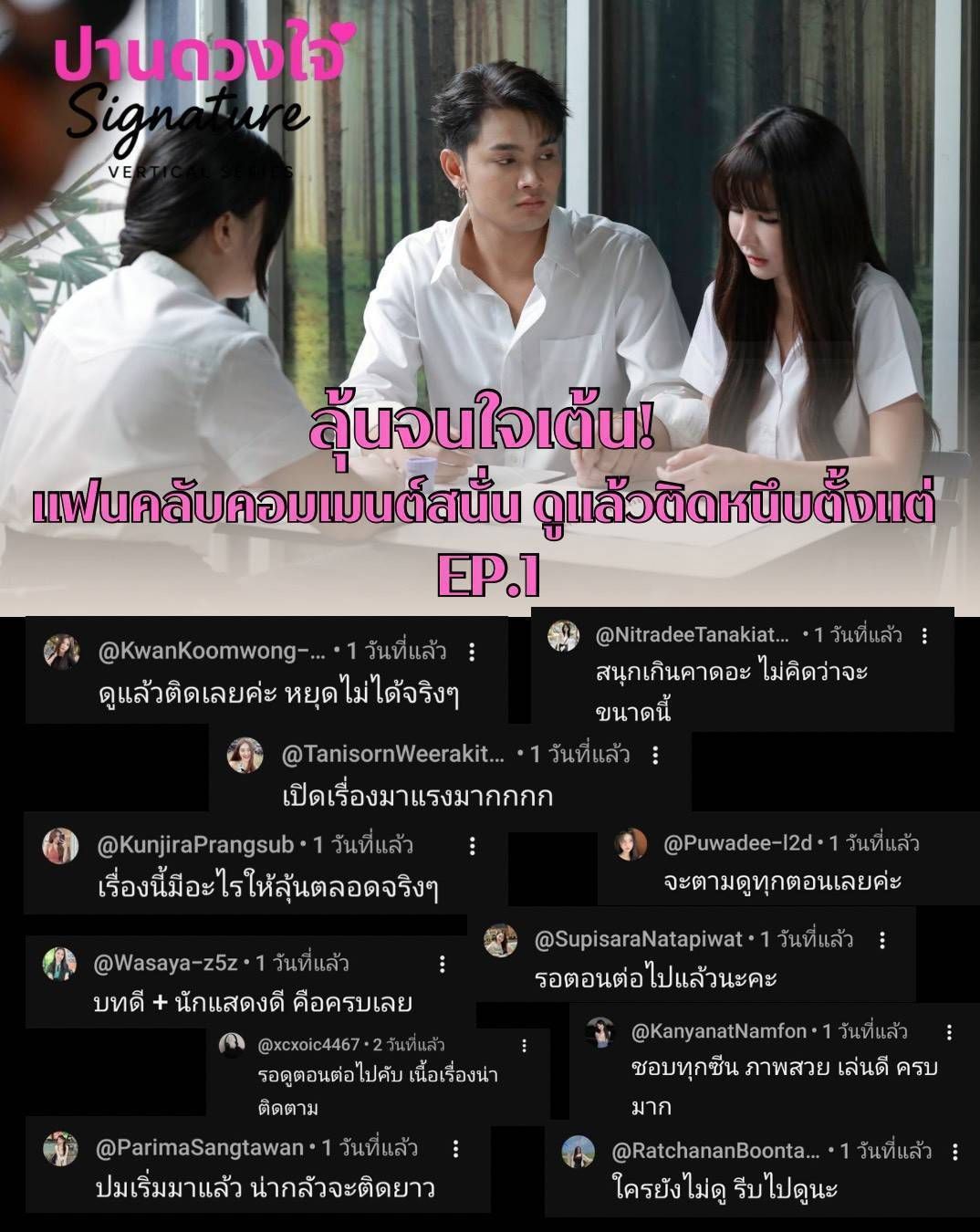 แต่เกลินก็ได้รับกำลังใจและการสนับสนุนเป็นอย่างดีจากทั้งนักแสดงร่วม และ น้าหมู ผู้กำกับฯ ที่ช่วยอธิบายคาแรคเตอร์ตัวละคร ดาริน สามารถอินกับบทบาทที่มีความคล้ายคลึงกับชีวิตจริงในช่วงวัยเด็กของเกลินด้วยค่ะ เปิดตัว EP แรก ฟีดแบ็กก็ดีมากๆ 4 หมื่นวิวกว่าๆ ดีใจค่ะ อยากให้ติดตามไปจนจบเลยนะคะ"ติดตามชมซีรีส์แนวตั้ง “ปานดวงใจ Signature” ทุกวันเสาร์ เวลา 19.00 น. ทาง Youtube และ FB ปานดวงใจ