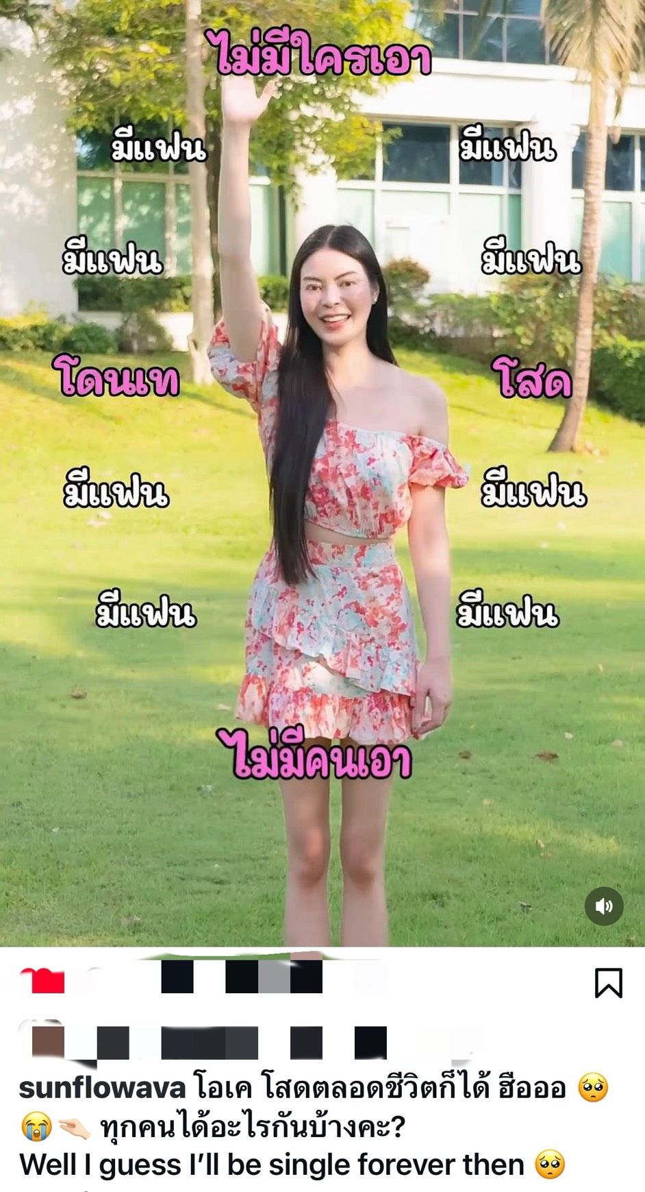 เรียกเสียงเอ็นดูจากแฟนๆ ได้แบบถล่มทลาย สำหรับคุณหนูหมื่นล้านพลังบวก เอวา ปวรวรรณ หลังเจ้าตัวโพสต์คลิปสุดน่ารัก พร้อมแคปชันแซวตัวเองแบบขำๆ ว่าด้วยสถานะหัวใจที่ยังโสดแต่เล่าออกมาได้น่ารักจนคนดูยิ้มตามโดยเอวาเขียนแคปชันทั้งภาษาไทยและภาษาอังกฤษชวนอมยิ้มว่า“โอเค โสดตลอดชีวิตก็ได้ ฮือออ ทุกคนได้อะไรกันบ้างคะ?Well I guess I’ll be single forever then ”