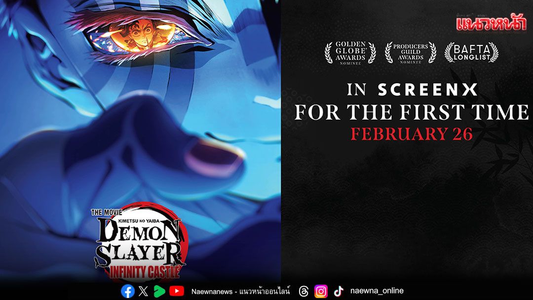 “Demon Slayer Infinity Castle – ดาบพิฆาตอสูรภาคปราสาทไร้ขอบเขต” กลับมาฉายอีกครั้งในโรงภาพยนตร์ และเป็นครั้งแรก ที่แฟนๆ เหล่านักล่าอสูรและเสาหลักจะได้ไปบุกปราสาทไร้ขอบเขตกันอีกครั้ง ในแบบที่ยิ่งใหญ่ตระการตากว่าที่เคย! กับการระเบิดความมันส์แบบ 270° ครั้งแรก! บนจอ SCREENX กับฉากที่ทำเพื่อรองรับการฉายแบบ 3 จอ รวม 40 นาที