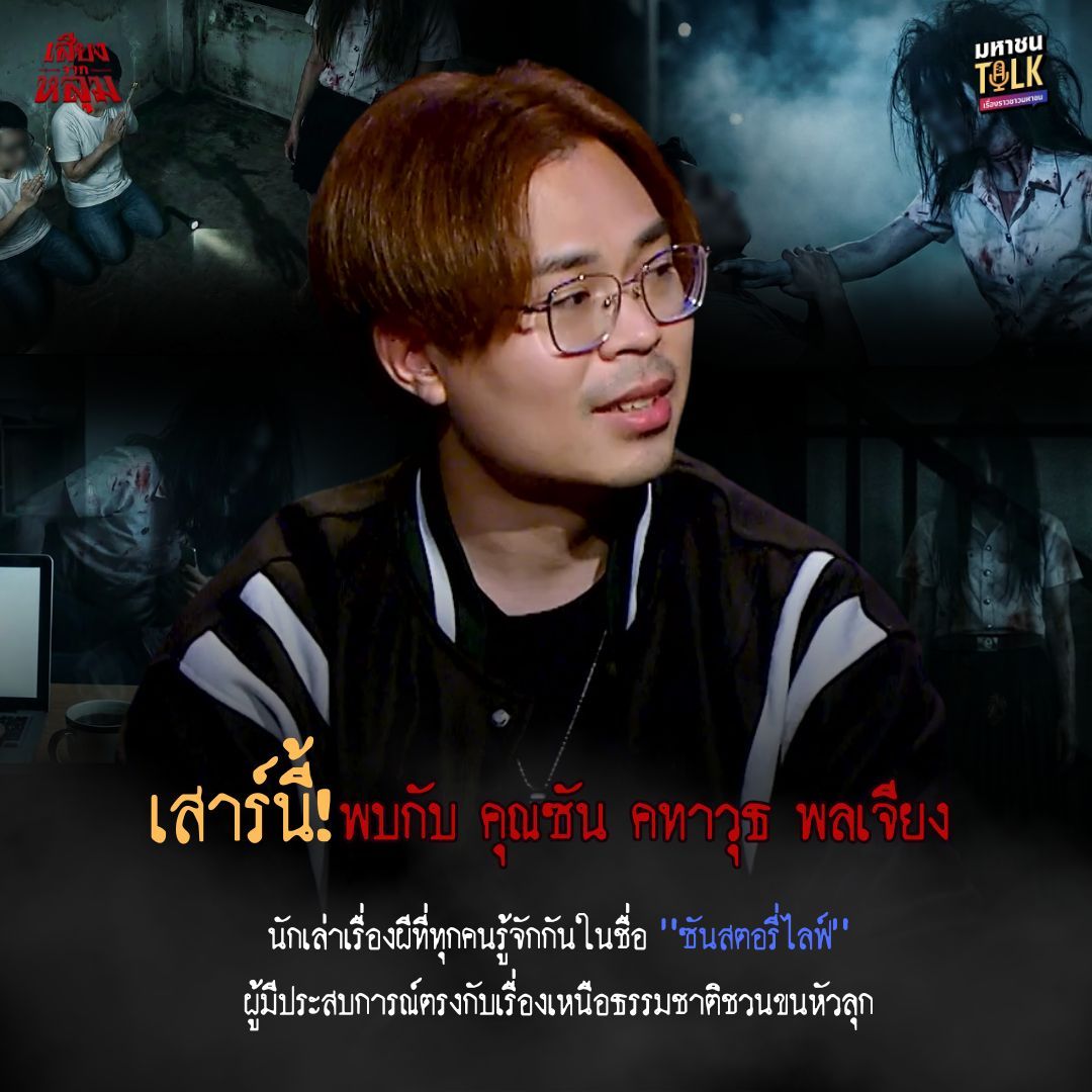 เพิ่มดีกรีความหลอนแบบขนลุกทุกนาที สำหรับพอดแคสต์ “เสียงจากหลุม” จากโปรเจกต์ มหาชนTalkที่อีพีล่าสุดสองพิธีกรประจำรายการ “เจด้า-ศรัณย่า ชุณหศาสตร์” และ “ชอน-ชวิศการ วรโรจน์โยธิน” ชวนแขกรับเชิญ “ซัน-คทาวุธ พลเจียง” หรือนักเล่าเรื่องผีที่หลายคนรู้จักในชื่อ “ซันสตอรี่ไลฟ์” มาแชร์ประสบการณ์สุดสะพรึงที่เกิดขึ้นจริง