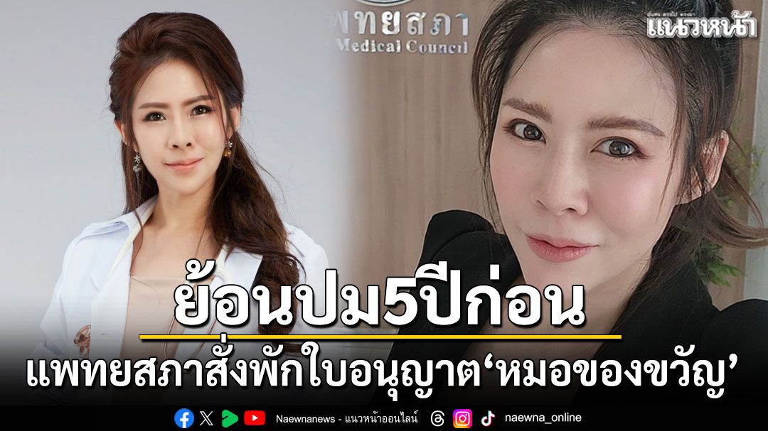 ทั้งนี้ ย้อนกลับไปเมื่อ 5 ปีก่อน เคยมีข่าวการเผยแพร่หนังสือจากแพทยสภา เลขที่ พส.011/(ส.2)/8791 ลงวันที่ 25 สิงหาคม 2564 ระบุว่า คณะกรรมการแพทยสภามีมติลงโทษพักใช้ใบอนุญาตประกอบวิชาชีพเวชกรรมของแพทย์หญิงของขวัญ เป็นเวลา 3 เดือน ตั้งแต่วันที่ 1 มกราคม 2565 ถึง 31 มีนาคม 2565