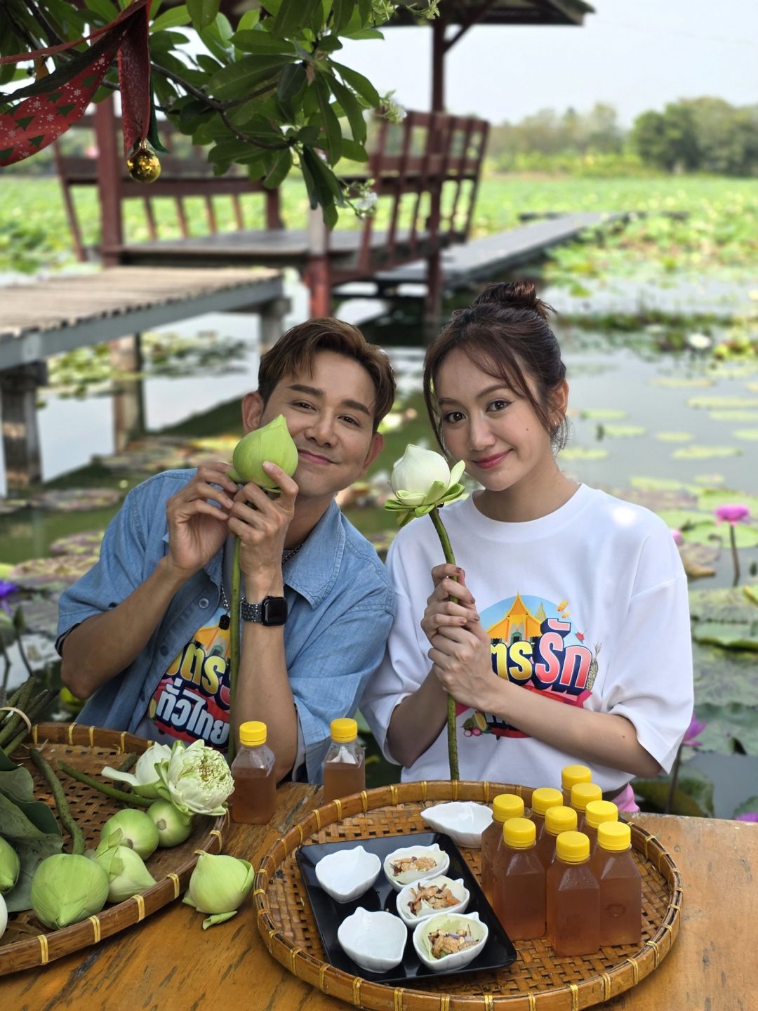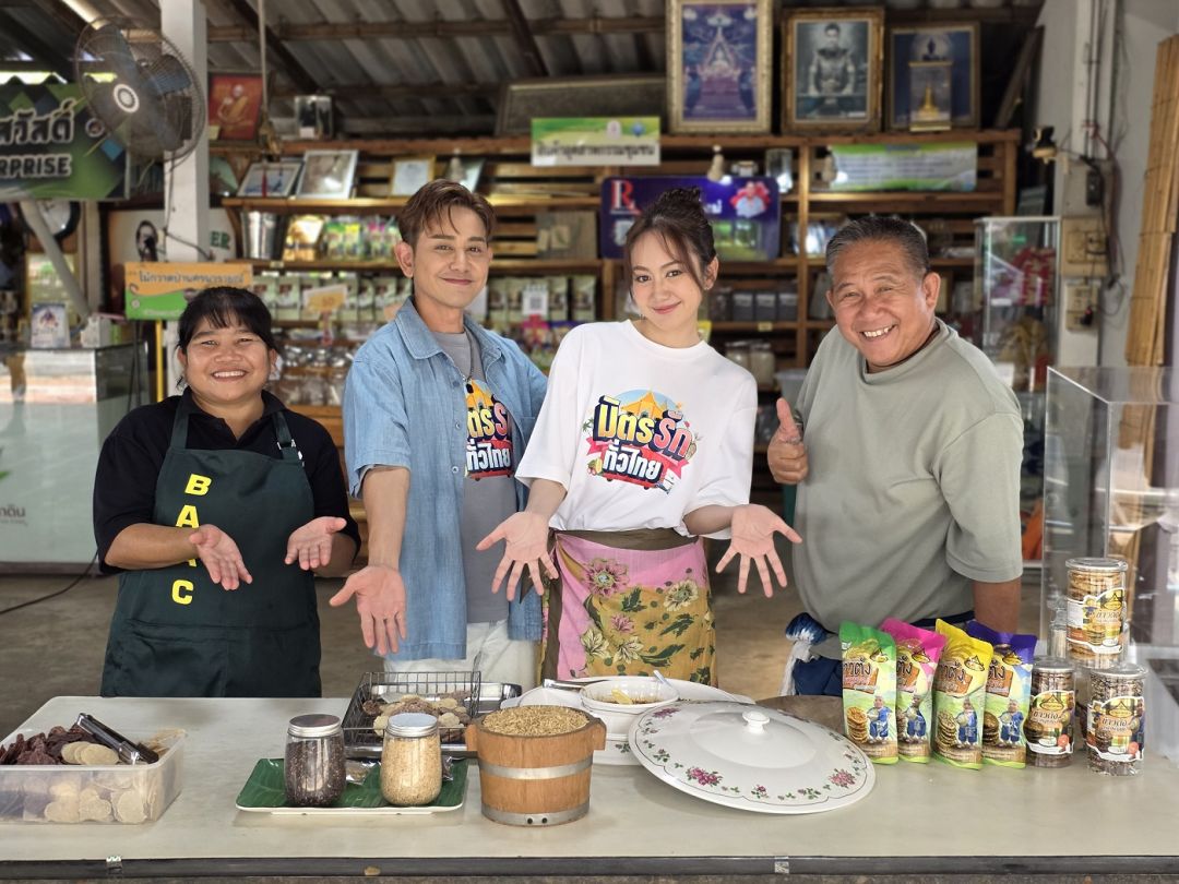 จากนั้นเดินทางต่อไปยังกลุ่มแม่บ้านเกษตรกรมหาสวัสดิ์นคร แหล่งผลิต “ข้าวตัง” ของดีขึ้นชื่อของชุมชน ไม่ว่าจะเป็นข้าวตังหน้าหมูหยอง หน้าธัญพืช ไข่เค็ม รวมถึงกล้วยตาก ที่ล้วนทำจากวัตถุดิบในพื้นที่ เพราะชาวบ้านส่วนใหญ่ประกอบอาชีพทำนาและปลูกกล้วย จึงนำผลผลิตมาแปรรูปสร้างมูลค่าเพิ่มและรายได้ให้ชุมชน งานนี้ “พ่อเอ-ลูกแป้ง” ได้ลงมือเรียนรู้ขั้นตอนการทำข้าวตังแบบใกล้ชิดอีกด้วยนอกจากของกินของฝากแล้วชุมชนยังส่งเสริมการท่องเที่ยวเชิงวิถีชีวิต โดยจัดทริปล่องเรือชมชุมชนบ้านศาลาดิน ก่อนแวะ “นาบัวลุงแจ่ม” แหล่งปลูกบัวหลวงขนาดใหญ่ ที่สองพิธีกรได้เก็บดอกบัวมาพับเพื่อนำไปไหว้พระ พร้อมจิบชาเกสรบัวท่ามกลางบรรยากาศชิลๆต่อด้วยการนั่งเรือไปไหว้พระขอพรที่วัดสุวรรณนารามวัดดังประจำชุมชน เสริมสิริมงคลก่อนปิดท้ายด้วยการชิมร้านเด็ดระดับตำนาน “เกรส อาก๋ง 100 ปีก๋วยเตี๋ยวต้มยำโบราณ สูตรเจ็กซ้ง” ที่สืบทอดความอร่อยยาวนานกว่า 100 ปี รสชาติจัดจ้านกลมกล่อมถูกใจสายก๋วยเตี๋ยวอย่างแน่นอนช่วงท้ายรายการสองพ่อลูกยังช่วยชาวบ้านขายสินค้าชุมชนตามสไตล์อบอุ่นเป็นกันเองพร้อมเชิญชวนแฟนๆทางบ้านที่สนใจสินค้าจากวิสาหกิจชุมชนที่รายการเดินทางไป สามารถสนับสนุนและสั่งซื้อได้ที่เว็บไซต์ shop.bugaboo.tv