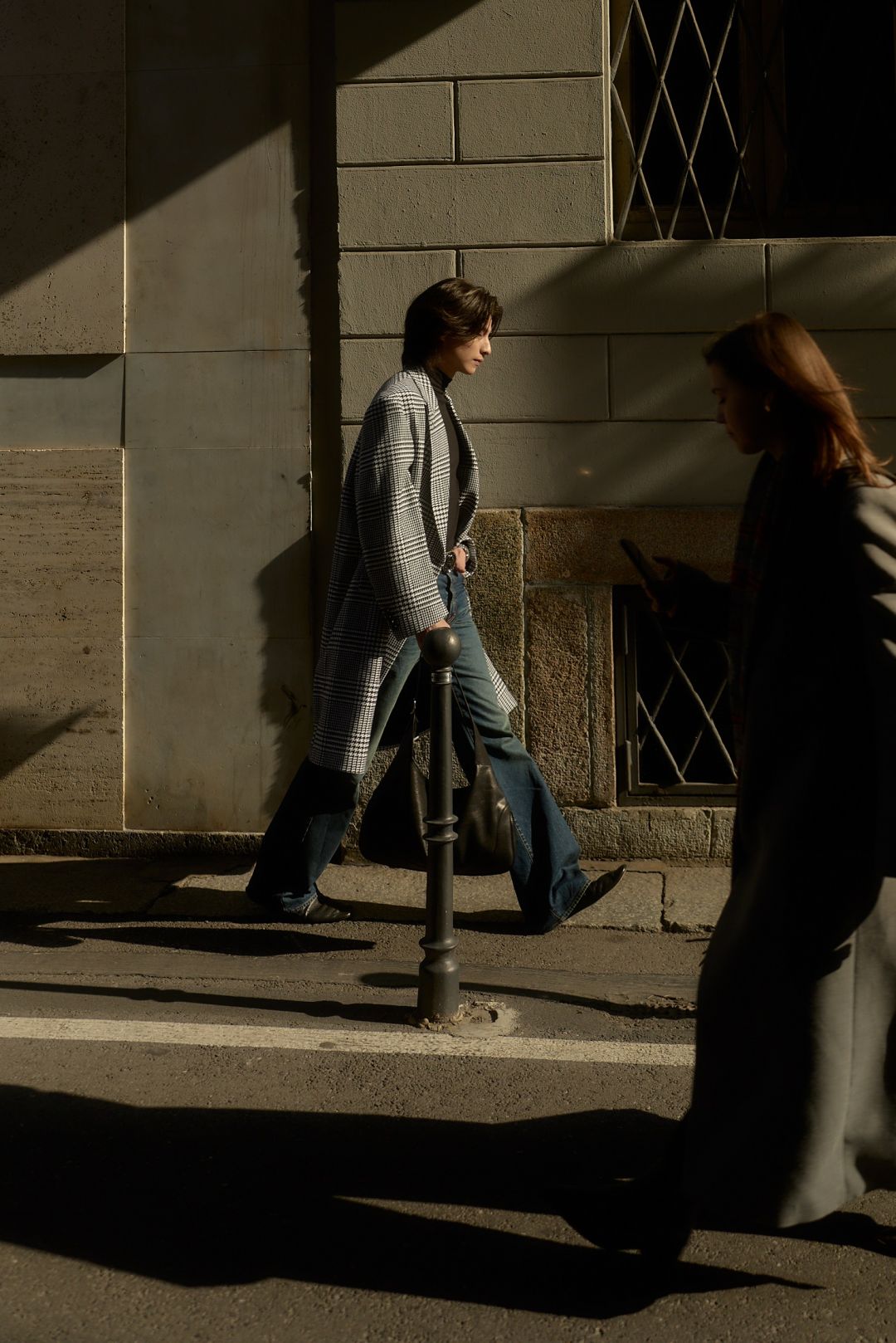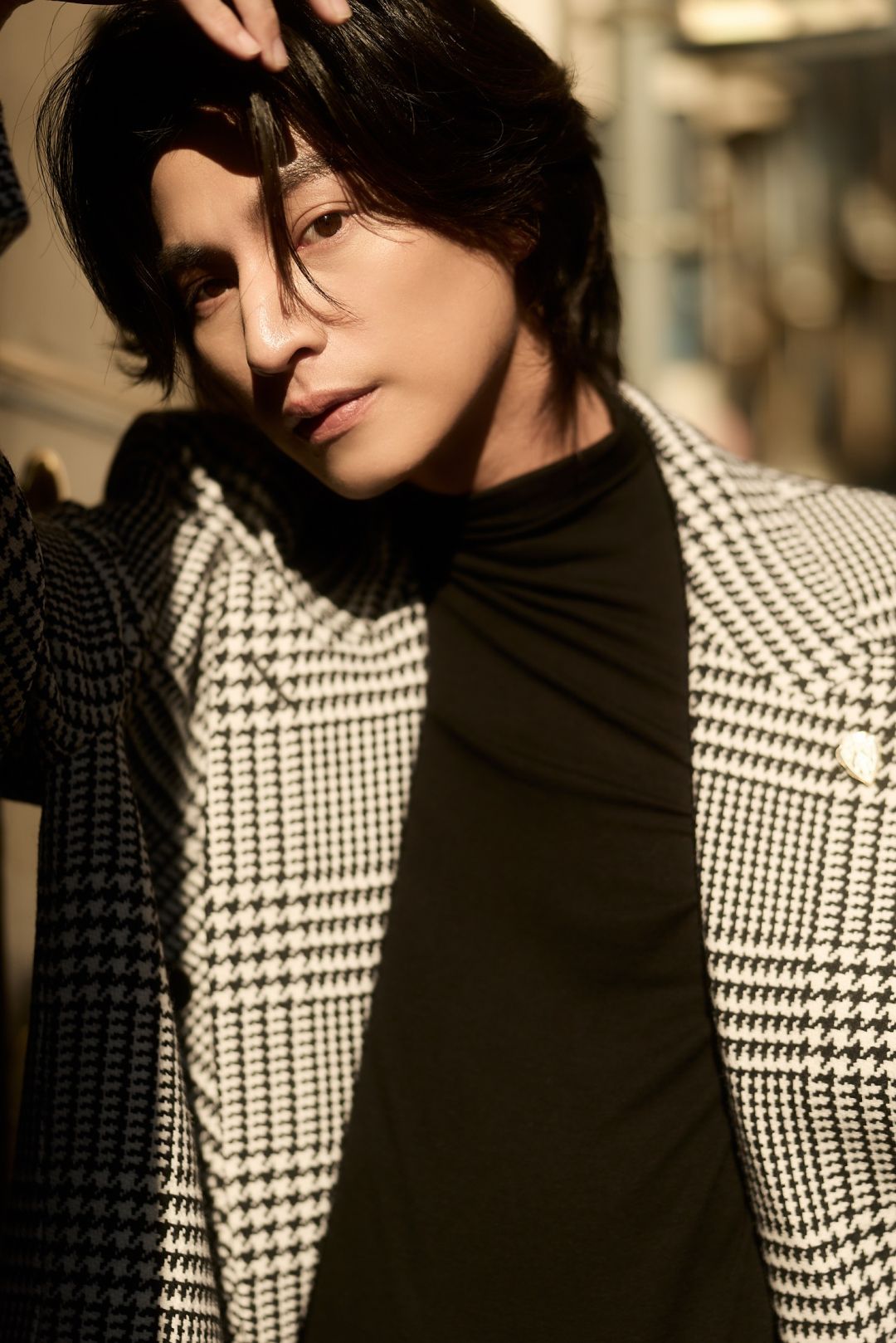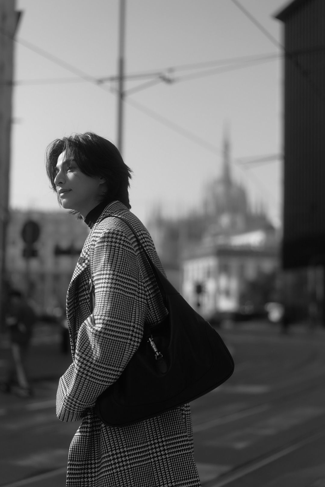 “กลัฟ - คณาวุฒิ” ถ่ายทอดเสน่ห์สุดอบอุ่นในแบบฉบับหนุ่ม Gucci ท่ามกลางไวบ์แสงแดดละมุนของมิลาน ผ่านลุค Cocco di Mamma จากคอลเล็กชั่น La Famiglia ด้วยเสื้อแขนยาวคอเต่าสีดำ จับคู่กางเกงผ้าฝ้ายเดนิมฟอกสีตกแต่งด้วยสัญลักษณ์ Horsebit พร้อมด้วยเสื้อโค้ทผ้าวูลลาย Prince of Wales สีขาว–ดำ ประดับด้วยเข็มกลัด Gucci Crest คอมพลีทลุคด้วยกระเป๋า รุ่น Jackie 1961 และรองเท้า Horsebit Loafer หนังสีดำ