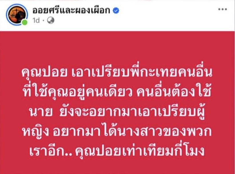 งานนี้เลยทำให้ ‘สาวปอย’ ถูกขุดแล้วขุดอีก ทั้งกรณีที่เคยโดนวางงานจาก ฟิล์ม ทิฟฟานี่ กรณีสลิปเงินที่ชื่อของ ‘ปอย’ขึ้นคำนำหน้าเป็น คุณ ทำให้เพจดัง ออยศรีและพองเพื่อน ออกมาโพสต์ว่า คุณปอย เอาเปรียบพี่กะเทยคนอื่นที่ใช้คุณอยู่คนเดียว คนอื่นต้องใช้นาย ยังจะอยากมาเอาเปรียบผู้หญิง อยากมาได้นางสาวของพวกเราอีก ..คุณปอย เท่าเทียมกี่โมง