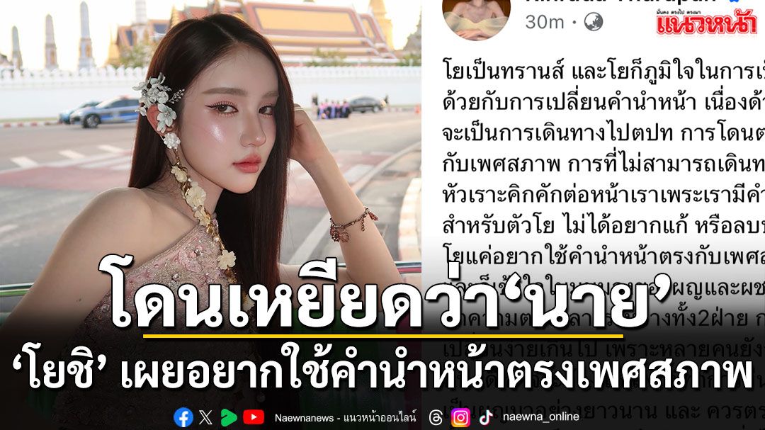 โยเป็นทรานส์ และโยก็ภูมิใจในการเป็นทรานส์ค่ะ และแน่นอนว่าโยเห็นด้วยกับการเปลี่ยนคำนำหน้า เนื่องด้วยปัญหาส่วนตัวที่เคยมีมา ไม่ว่าจะเป็นการเดินทางไปตปท การโดนตรวจค้นเพราะคำนำหน้าเราไม่ตรงกับเพศสภาพ การที่ไม่สามารถเดินทางไปในบางประเทศได้ หรือการหัวเราะคิกคักต่อหน้าเราเพระเรามีคำนำหน้าเป็นนาย