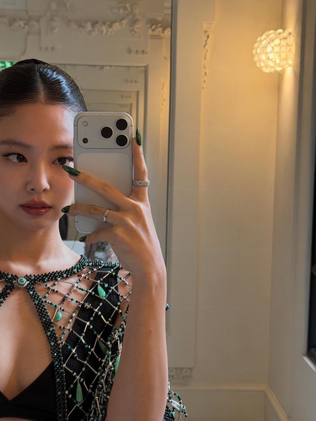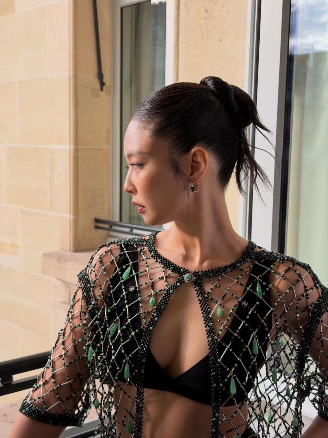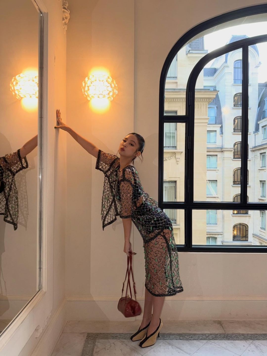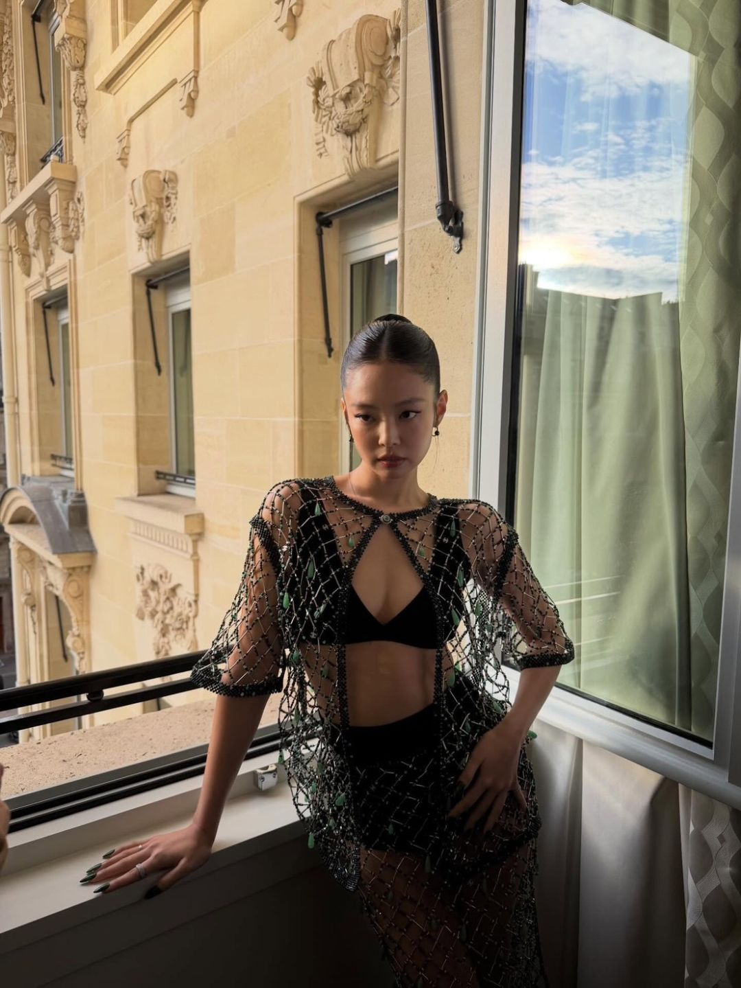 สำหรับลุคในงานครั้งนี้ เจนนี่มาในสไตล์สุดโดดเด่น สวมบราท็อปสีดำแมตช์กับชุดซีทรูตาข่ายประดับคริสตัลที่ช่วยเพิ่มความระยิบระยับ เผยความเซ็กซี่อย่างมีระดับ ก่อนคอมพลีตลุคด้วยโค้ทหนังสีแดงยาวและกระเป๋าถือสีแดง เพิ่มความเท่และความหรูในเวลาเดียวกัน
