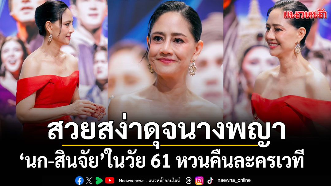 เรียกได้ว่ากาลเวลาไม่สามารถทำอะไรเธอคนนี้ได้เลย สำหรับ นก -สินจัย เปล่งพานิช ในวัย 61 ปี ที่ยังคงเป๊ะตั้งแต่หัวจรดเท้าไม่เปลี่ยน แถมนับวันใบหน้าจะเด็กลงเรื่อยๆ ล่าสุดในงานเปิดม่านการแสดงให้ได้ชมกันแล้ว สำหรับ “เมืองไทยรัชดาลัย คืนสู่เหย้า REUNION SHOW 2026” โชว์สุดพิเศษจากค่าย ‘ซีเนริโอ’ ที่นำศิษย์เก่าที่เคยร่วมงานกับ “เมืองไทยรัชดาลัย เธียเตอร์” มารวมกันไว้ โดย นก –สินจัย ปรากฏตัวในชุดราตรีเกาะอก สีแดงสด สง่างาม ดุจนางพญา มาฝากให้ชม