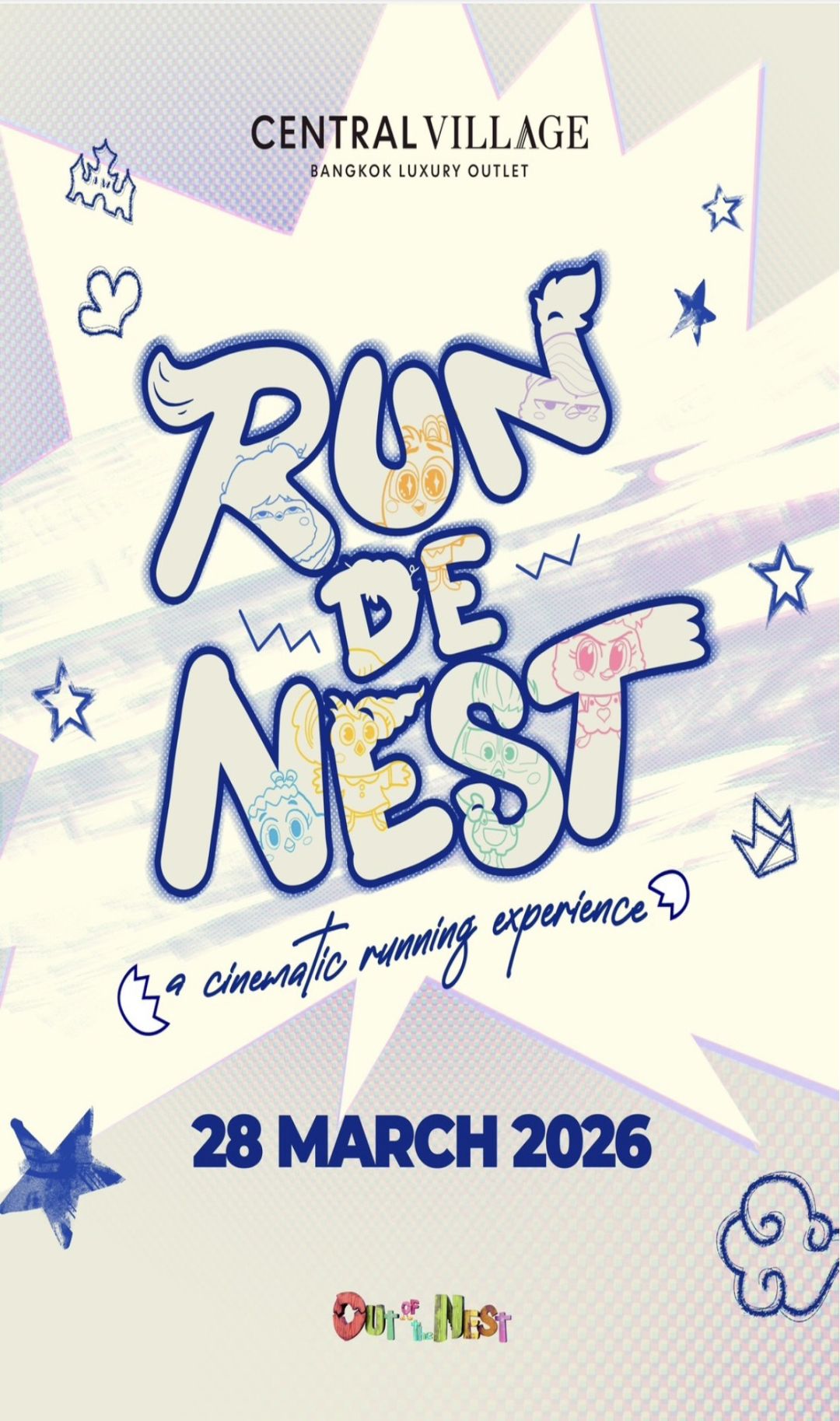 กิจกรรม Run de Nest & Outdoor Movie Night เกิดขึ้นจากความร่วมมือ ระหว่าง T&B Media Global (Thailand) และ Central Village Outlet ที่จะมาชวนสายออกกำลังกาย จะมาเดี่ยว มาคู่หรือมาเป็นครอบครัวมาสัมผัสประสบการณ์ใหม่ของงานวิ่งใน Central Village Outlet พร้อมกิจกรรมที่รวมความสนุกไว้ในที่เดียว ทั้งการออกกำลังกาย Fun Run ระยะทางประมาณ 2 กิโลเมตร สำหรับผู้เข้าร่วมทุกเพศทุกวัย และ Pet Parent บรรยากาศสนุกสนานตลอดเส้นทาง โดยผู้เข้าร่วม จะได้สัมผัสประสบการณ์การวิ่งในบรรยากาศสบาย ๆ พร้อมกิจกรรมไลฟ์สไตล์หลังเส้นชัย ก่อนปิดท้ายค่ำคืนด้วย การชมภาพยนตร์กลางแปลง (Outdoor Cinema) เรื่อง “Out of the Nest องครักษ์พิทักษ์เจี๊ยบ” แอนิเมชัน 1 ใน 35 เรื่องจากทั่วโลกที่ผ่านเกณฑ์พิจารณาอย่างเป็นทางการ ในประกาศรางวัลออสการ์ครั้งที่ 38 ท่ามกลางบรรยากาศชิล ๆ เหมาะสำหรับนักวิ่งมือใหม่ ครอบครัว กลุ่มเพื่อน รวมถึงผู้ที่ต้องการมาพักผ่อนเดินชมบรรยากาศและช้อปปิ้ง พร้อมเพลิดเพลินกับบูธอาหารในโซน Food & Lifestyle Zone พร้อมกิจกรรมที่จะสร้างความสนุกในสุดสัปดาห์ พร้อมรับของที่ระลึกสำหรับผู้ร่วมงาน กิจกรรมดีๆที่สายวิ่ง สายออกกำลังกายไม่ควรพลาด สนใจสามารถลงทะเบียนเข้าร่วมงาน Zip Event: https://www.zipeventapp.com/e/RUNdeNEST