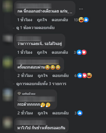 ตัวอย่างคอมเมนต์ที่ปรากฏในโพสต์ อาทิ “อิแพนเค้ก”, “ครั้งแรกสอบผ่าน”, “อายุจะ 50 และยังจะหนู หนู อยู่นั้น”, “รูปเงากับตัวอักษรย่อเป็นไปคนละทางเลยนะ”