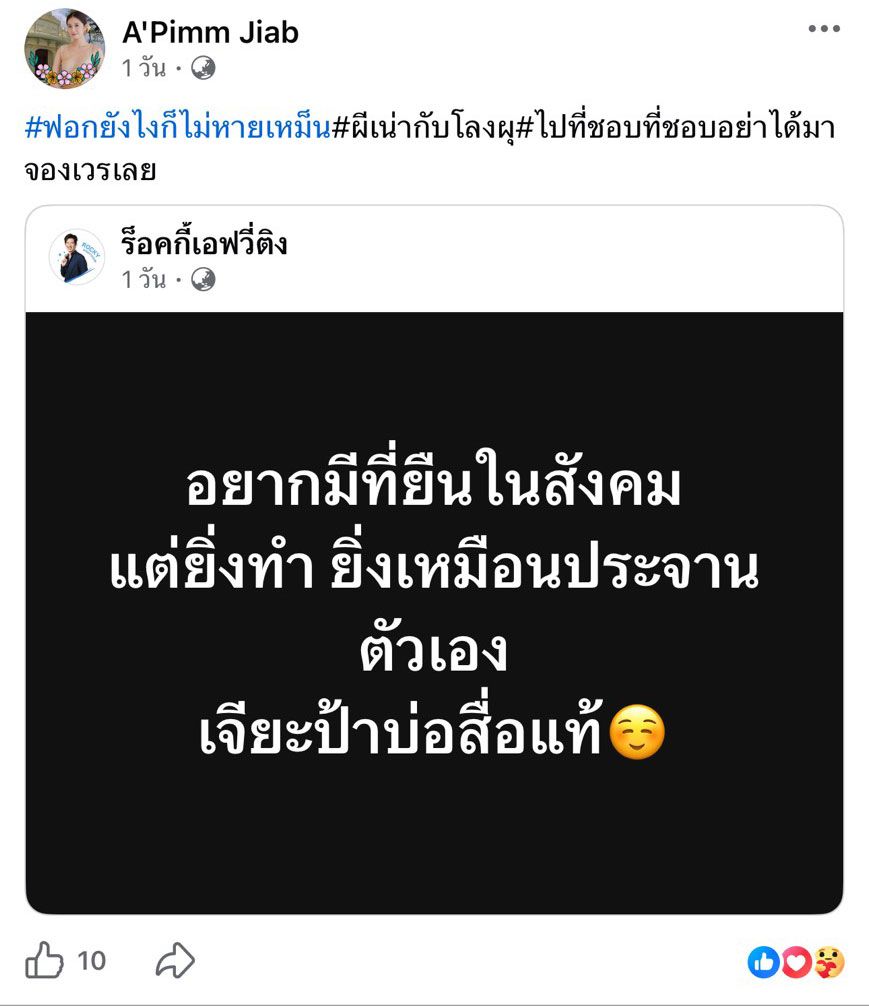 ล่าสุด เจี๊ยบ อัฐพรพิมพ์ สมบัติเจริญ ภรรยาที่เมืองไทยของ แอ๊ด สุรชัย ได้ออกมาโพสต์รูปพร้อมเขียนข้อความว่า “ความสุขในวันที่เจ้ากรรมนายเวรปล่อยมือ #ไปที่ชอบที่ชอบ #ทิ้งคือตั้งใจหายคือไม่เจตนา #ความจริงมีหนึ่งเดียว” และแชร์โพสต์ของลูกชาย ร็อคกี้ สุรบดินทร์ พร้อมเขียนว่า “#ฟอกยังไงก็ไม่หายเหม็น #ผีเน่ากับโลงผุ #ไปที่ชอบที่ชอบอย่าได้มาจองเวรเลย”