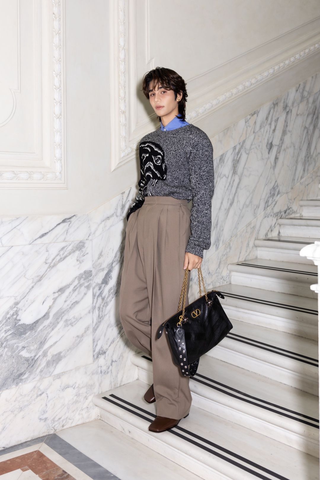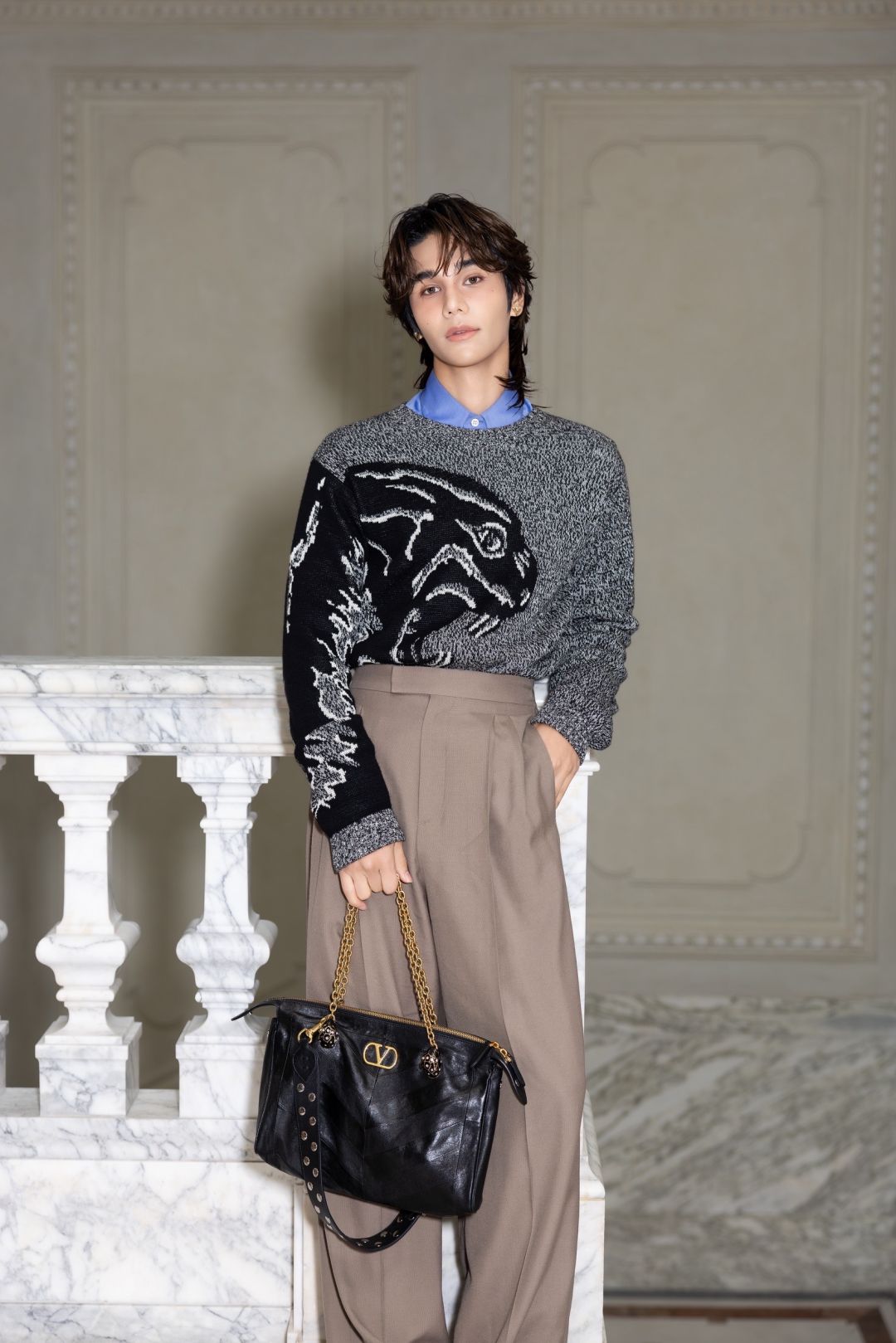 โดยในงานครั้งนี้ “Jeff Satur” ได้ร่วมนั่งฟร้อนท์โรว์ พร้อมปรากฏตัวใน Total Look จาก “Maison Valentino” มาในสไตล์เรียบเท่แต่โดดเด่น ด้วยสเวตเตอร์ถักลายกราฟิกโทนขาวดำเลเยอร์กับเชิ้ตสีฟ้า จับคู่กางเกงสแลคเอวสูงสีเบจ พร้อมถือกระเป๋า Panthea Bag จาก “Maison Valentino” ที่มาในดีไซน์เรียบหรู คลาสสิค ในฐานะหนึ่งในแขกคนสำคัญของแบรนด์ นับเป็นอีกหนึ่งก้าวสำคัญบนเวทีแฟชั่นระดับโลกของศิลปินไทย และเป็นโมเมนต์ที่แฟนๆ ทั่วโลกจับตามอง