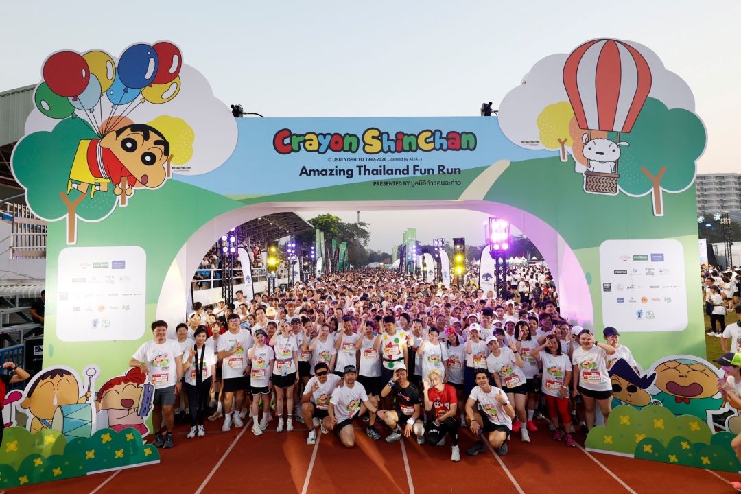 เรียกว่าทั้งอบอุ่น ทั้งสนุก และเต็มไปด้วยพลังแห่งการให้ สำหรับงานวิ่งการกุศลสุดน่ารักแห่งปี! “Crayon Shinchan Amazing Thailand Fun Run 2026” จัดขึ้นโดย มูลนิธิก้าวคนละก้าว นำโดยร็อกสตาร์ใจบุญ ตูน-อาทิวราห์ คงมาลัย ที่ได้เนรมิตพื้นที่ของมหาวิทยาลัยมหิดล วิทยาเขตศาลายา ให้กลายเป็นโลกแห่งความสดใสของตัวการ์ตูนขวัญใจมหาชนอย่าง ‘ชินจังจอมแก่น’ ท่ามกลางบรรยากาศสุดคึกคักของเหล่านักวิ่งและแฟนคลับชินจังกว่า 10,000 คน ที่มาร่วมออกกำลังกายสร้างสุขภาพที่ดี เพื่อระดมทุนส่งต่อโอกาสทางการศึกษาให้กับเด็กไทยในโครงการ “ก้าวเพื่อน้อง ปีที่ 6”