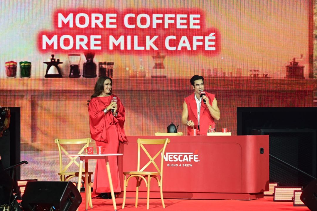งาน "เนสกาแฟ เบลนด์ แอนด์ บรู เมค ดิส โมเมนต์ มอร์”เปิดฉากอย่างยิ่งใหญ่ด้วยการเปิดตัวของ ดูโอแบรนด์แอมบาสเดอร์ ณเดชน์ และแบมแบม ท่ามกลางแสง สี เสียง และจอ Immersive 360 องศา สุดอลังการ พร้อมจับไมค์โชว์เพลง “ไปอีก (Ready For MORE)” เป็นครั้งแรก เรียกเสียงกรี๊ดจากแฟนๆ ดังกระหึ่มเวที ทั้งคู่ได้ดวลจังหวะในเกม “จังหวะอร่อยลงตัว” เพิ่มกาแฟ เติมนม แบบตัวต่อตัว ก่อนเปลี่ยนโหมดเป็นความฮาในช่วง “กำกับกาแฟ”ที่ณเดชน์สวมบทเป็นบาริสต้าสุดหล่อ และแบมแบมนั่งแท่นผู้กำกับ ร่วมเล่นละครกับแฟนคลับผู้โชคดี ก่อนมีเซอร์ไพรส์กับการปรากฏตัวของแขกรับเชิญพิเศษ นินิว - คริสติน่า แซ่แต้ ในบทลูกค้าตัวแม่มาร่วมสร้างเสียงหัวเราะและรอยยิ้มให้ทั้งฮอลล์