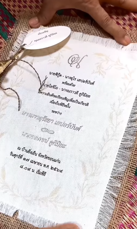 "แม่แก้ว" อวดการ์ดแต่งงาน "ณเดชน์-ญาญ่า" เผยฤกษ์ดี 17 เม.ย. นี้ จัดเรียบง่ายตามประเพณีอีสาน ณ บ้านสวนยิ่งเย็น ขอนแก่น