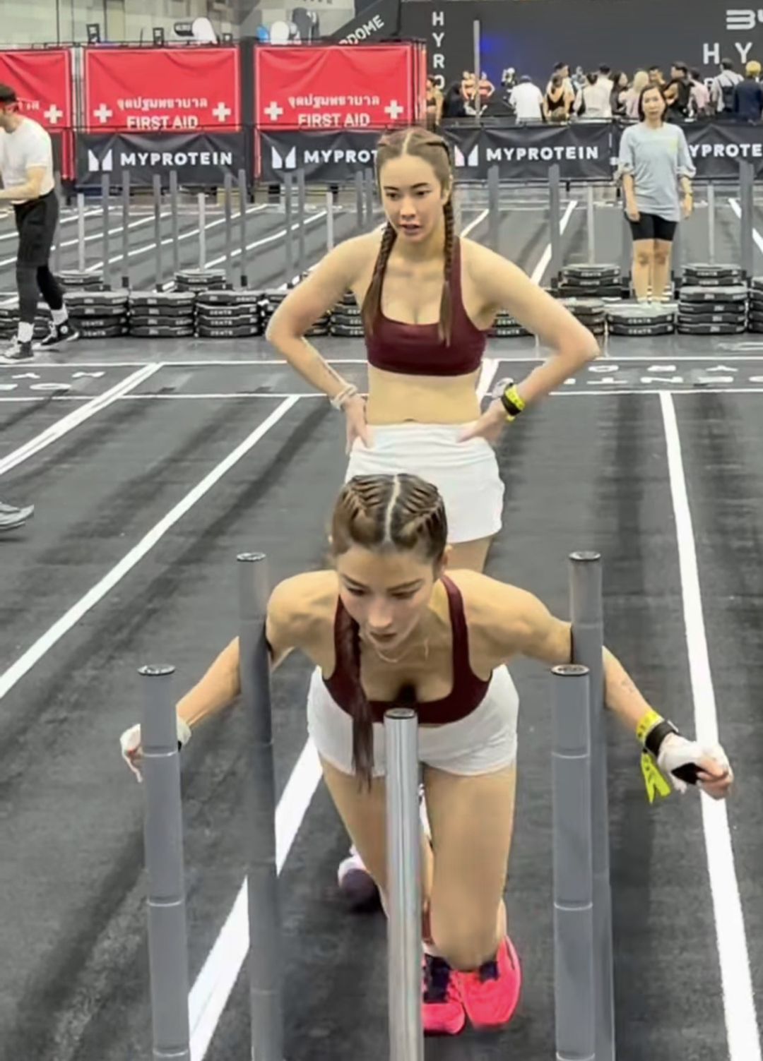 โดย ‘แอน ทองประสม’ ได้เผยเบื้องหลังแท็กทีม เจมส์ จิ ทำศึก HYROX สู้ชีวิตตั้งแต่ station แรก“ตอนสมัคร ไม่รู้ก่อนว่าใช้น้ำหนักผู้ชาย จะถอนตัว กลัวไม่เท่! ตั้งใจซ้อมมาตลอด 2 เดือน รู้ตัวเลยว่า Strength (ความแข็งแกร่ง) ตัวเองยังไม่ค่อยดี วันจริง! ตื่นเต้นทำไมไม่รู้หัวใจพุ่ง ตั้งแต่ station แรก จนจบ! เทคนิคต่างๆ ที่ซ้อมมา เดี๋ยวนึกได้! เดี๋ยวหาย! งงตัวเองเหมือนกัน” ด้าน “เจมส์ ตะคริวขึ้นตอน Farmer’s Carry (การถือตุ้มน้ำหนักเดิน) แอนเดินแบกอยู่ เรียกไปหลายที นางไม่ตอบรับ ใจนี่วูบเลย (เวลานางเงียบนี่น่ากลัว) แต่ก็กัดฟันกันจนจบ!”