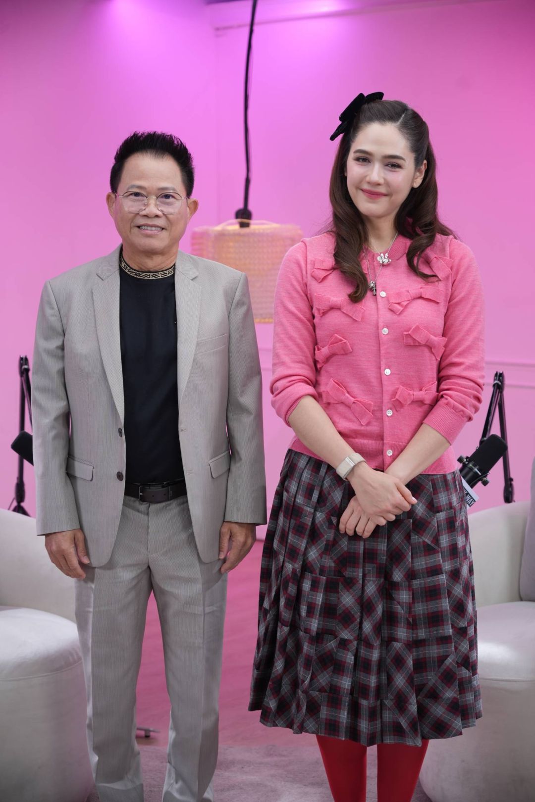 หมอเรืองยศ : อายุมากขึ้นตามวัย มันเป็นเรื่องปกติที่จะเกิดขึ้น ให้สังเกตเลยนะฮะว่าเนื้อเยื่อของใบหน้ามันมีการหย่อนคล้อย โดยเฉพาะริมฝีปาก สังเกตไหมฮะว่าคนอายุมากขึ้น เวลาพูดเราจะเห็นฟันล่างมากขึ้น แต่ฟันหน้าบนบางทีจะมองเห็นน้อยลงเพราะมันร่วงลงมา อันนี้มันเป็นเรื่องของวัยที่เกิดขึ้น คราวนี้การหย่อนคล้อยตรงนี้ ถ้าถามว่าเราเปลี่ยนสภาพของฟันให้มันมองเห็นมากขึ้น ส่วนไหนที่ไม่ควรมองเห็นมาก เช่น ฟันล่าง เราให้มันมองเห็นน้อยลง เราก็สามารถจัดได้ เอาเป็นว่าถ้าเกิดยิ่งอายุมากขึ้น ถ้าเกิดคนที่ไม่เคยจัดฟันมา การบดเคี้ยวผิดปกติก็เกิดการสึกของฟันกรามด้านหลังค่อนข้างเยอะ พอสึกเยอะหน้าเราก็จะสั้นลง อันนี้เป็นทุกคน แต่ถ้าเกิดจัดฟันได้ดี แนวตั้ง แนวเสาเข็มอะไรมันดีหมด มันจะคีบตรงนั้นไว้นะ มันก็จะทำให้เป็นลักษณะของการที่มันอยู่ตรงนั้น และคุณชมพู่รู้ไหมว่าจริง ๆ ฟันคนเราที่ถามว่าสวยที่สุด ตอนอายุประมาณเท่าไหร ผมมักจะบอกประจำเลยว่า ฟันสวยสุดอยู่ที่อายุประมาณ 18 ปี เพราะฉะนั้นเป็นคีย์หนึ่งนะฮะ เป็นคีย์หนึ่งที่ถ้าเกิดเราทำความสวยงาม อย่างคนอายุมาก ๆ ที่มาจัดฟัน เห็นไหมว่าบางทีมาจัดฟันตอนอายุเยอะ ฟันหน้าสึกไปละ อายุมากหลายคน เขี้ยวมันสึกไป ความแหลมคมมันน้อยไป แต่จริง ๆ ถ้าจัดฟันมาตั้งแต่เด็ก ความคมมันจะอยู่ แต่ถ้าเกิดฟันมันสบไม่ดีมันก็จะสึกไป เพราะฉะนั้นการจัดฟันในตอนผู้ใหญ่ เราสามารถที่จะตกแต่งฟันให้มันดูสวยก่อน แล้วเราก็ดึงฟันมันลงมาได้ การดึงฟันไม่ใช่เพราะไม่แข็งแรงฟันถูกดึงมากระดูกถูกดึงตามมาด้วย เพราะฉะนั้นมันอยู่ที่เทคนิคว่าเราจะทำมันไหมเท่านั้นเอง อย่างที่บอกว่าถ้าเกิดว่าจะทำให้หน้าดูอ่อนเยาว์ ในเมื่อฟันมันมองไม่เห็น เราก็ทำให้ฟันมันมองเห็น ตั้งฟันด้านหลังไปดี ๆ ตั้งให้มันตรงขึ้น ใบหน้าเราก็ดูสูงขึ้น การที่จะทำให้ดูแก่ลงมันก็น้อยลง อยู่ที่เราจะวางแผนมันหรือเปล่า