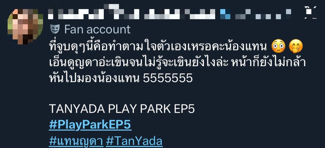 ทำเอาโซเชียลแทบลุกเป็นไฟ หลัง “Play Park รักไม่คาดฝัน” EP.5 ออนแอร์ไป เพราะตอนนี้เสิร์ฟครบทุกอารมณ์แบบไม่ให้พักหายใจ ทั้งลุ้น ทั้งพีค ทั้งฟินจนคนดูเขินตัวบิด! โดยเฉพาะฉากจูบในตอนท้าย ที่ ลิลิน (แทน ดวงแก้ว) เดินเครื่องรุก อิงอิง (ญดา นริลญา) จนคนดูหายใจไม่ทั่วท้องกันเลยทีเดียว