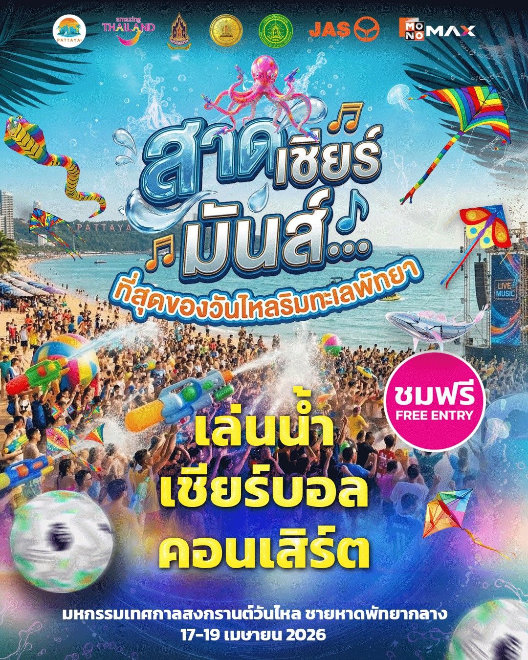 เตรียมตัวให้พร้อมกับมหกรรมความสนุกครั้งยิ่งใหญ่ที่ทุกคนรอคอย MONOMAX (โมโนแม็กซ์) เนรมิตชายหาดพัทยาให้กลายเป็นเวทีแห่งความสุข ในงาน “พัทยา สงกรานต์ วันไหล 2026” มหกรรมวันไหลริมทะเลสุดยิ่งใหญ่แห่งเดียวในประเทศไทย ที่พร้อมต้อนรับนักท่องเที่ยวทั้งชาวไทยและต่างชาติ ให้มาร่วม “สาด เชียร์ มันส์” เฉลิมฉลองเทศกาลสงกรานต์อย่างยิ่งใหญ่ตลอด 3 วัน แบบจัดหนักจัดเต็มครบทุกความสนุก!!