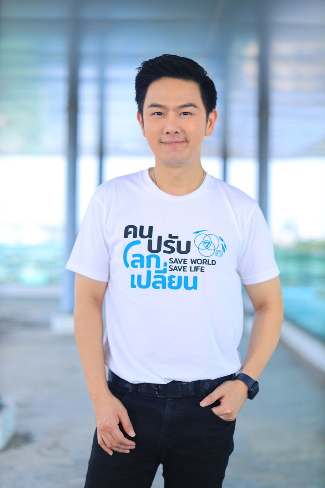 ผมอยากชวนแฟน ๆ ร่วมประหยัดพลังงานกันนะครับ วันนี้วิกฤตการสู้รบตะวันออกกลางได้ขยายความรุนแรงมากขึ้น และส่งผลกระทบมาถึงเราอย่างหลีกเลี่ยงไม่ได้ โดยเฉพาะเรื่องของวิกฤตน้ำมัน พลังงาน และดูเหมือนว่าเราจะต้องเผชิญกับสถานการณ์แบบนี้ไปอีกนาน ดังนั้นวันนี้เริ่มต้นได้ด้วยที่ตัวของเรา จากจุดเล็ก ๆ รวมกันเป็นพลังที่ยิ่งใหญ่ เปลี่ยนแปลงโลกได้ด้วยตัวเราคุณปรับ โลกเปลี่ยน Safe World Safe Life ครับ”