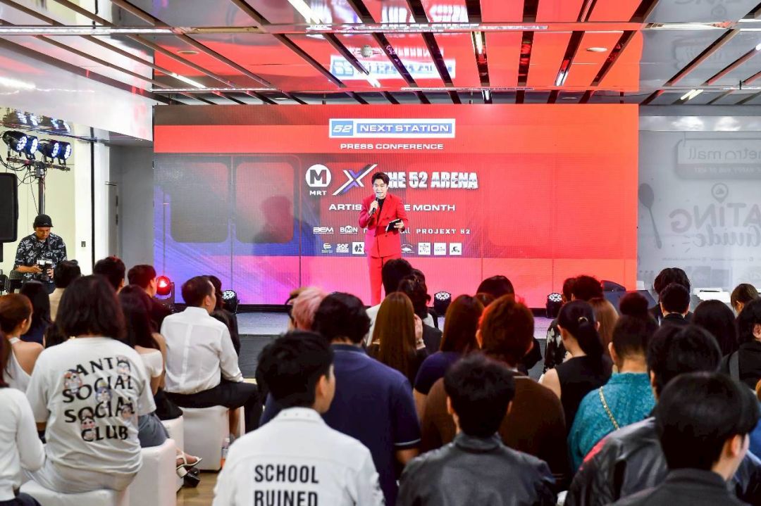 โดยภายในงานแถลงข่าว MRT x THE 52 ARENA “Artist of The Month” ที่นอกจากจะเปิดตัว Line Up แบบจัดหนักจัดเต็มแล้ว ยังมาพร้อมการรวมตัวของเหล่าแขกรับเชิญคนพิเศษ อาทิ ฟลุ๊คจ์ - พงศภัทร์ กันคำ เจ้าของฉายา ไอ้ต้าวเงือก ลักยิ้มละลาย หล่อละมุน, กลุ่ม BBG.Bubblegum (แบงค์, เกมส์, บีม, อาร์ม) รวมถึงครีเอเตอร์ชื่อดังอย่าง DRiPA และ AngelAngie ที่มาร่วมสร้างสีสันและร่วมเป็นส่วนหนึ่งของปรากฏการณ์ความสนุกครั้งนี้