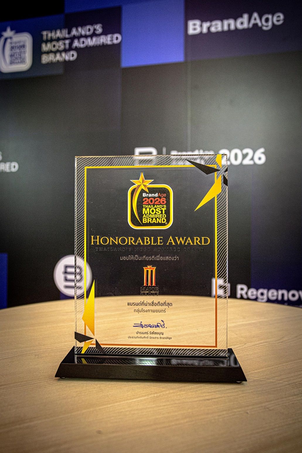 บริษัท เมเจอร์ ซีนีเพล็กซ์ กรุ้ป จำกัด (มหาชน) ตอกย้ำความเป็นผู้นำอุตสาหกรรมธุรกิจโรงภาพยนตร์ของประเทศไทย คว้ารางวัลอันดับ 1 ในใจผู้บริโภคจากผลสำรวจ "2026 Thailand’s Most Admired Brand" ในกลุ่มโรงภาพยนตร์ต่อเนื่องเป็นปีที่ 5 สะท้อนความแข็งแกร่งของแบรนด์ที่ปรับตัวเข้ากับยุคสมัย และการสร้างประสบการณ์ความบันเทิงที่เหนือระดับอย่างไม่หยุดนิ่ง