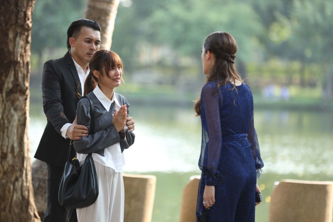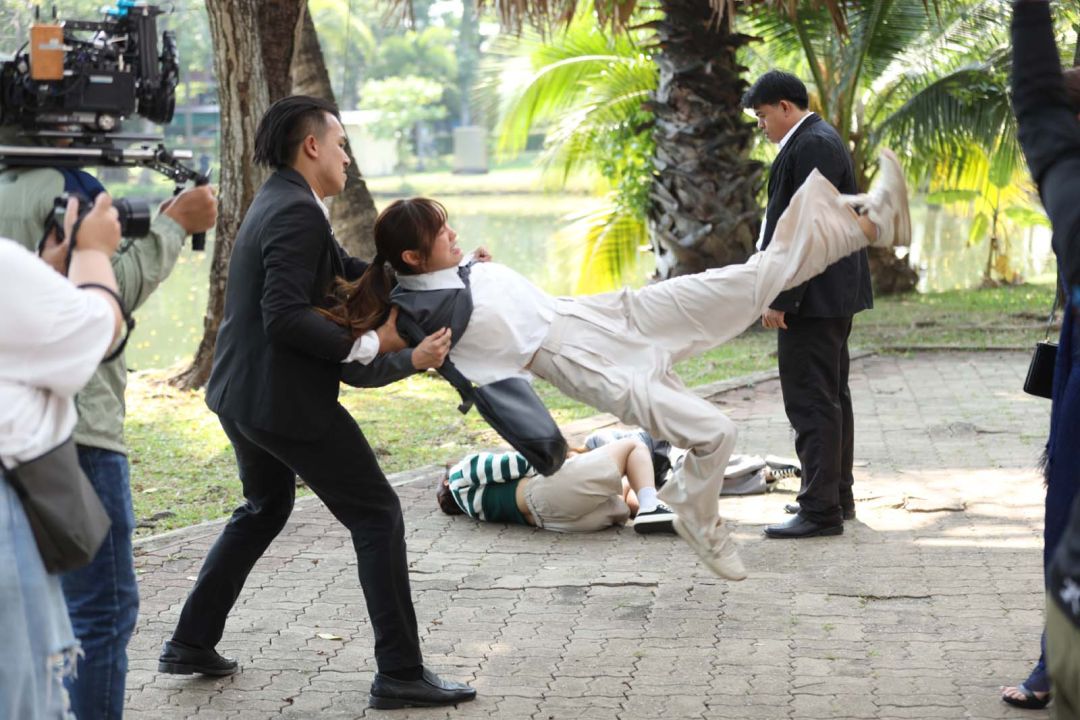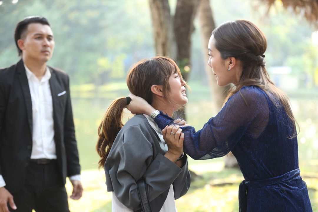 โดยฉากนี้เป็นเซตความพีคเมื่อ “ผักบุ้ง” (เก๋ไก๋), “คะน้า” (แก๊ป จักริน) และ “ยงยุทธ์” (บิ๊ก) นัดเจอกันเพื่อปรับความเข้าใจและเยียวยาแผลใจในครอบครัว แต่บรรยากาศความอบอุ่นกลับถูกทำลายลงทันทีเมื่อ “มิก้า” โผล่มาขัดจังหวะพร้อมเปิดศึกทำร้ายผักบุ้งอย่างบ้าคลั่ง นาทีนี้สปิริตความรักพี่น้องก็พุ่งกระฉูด เมื่อ “คะน้า” ไม่รอช้ากระโดดเข้าขวางปกป้องพี่สาวสุดกำลัง รวมถึงเพื่อนสนิทอย่าง สำลี (จ๊ะจ๋า) กับ หนิวหนิว (ซีน) ต่างก็พยายามเข้ามาช่วยเหลือ แต่ความเดือดยังไม่จบเพียงเท่านี้ เมื่อ “ยงยุทธ์” ผู้เป็นพ่อที่รักลูกดั่งดวงใจ เห็นลูกๆ ตกอยู่ในอันตรายก็ทนนิ่งเฉยไม่ได้ พุ่งตัวเข้ามารับหน้าหวังหยุดยั้งการปะทะ จนเกิดเหตุไม่คาดคิดเลยทีเดียว