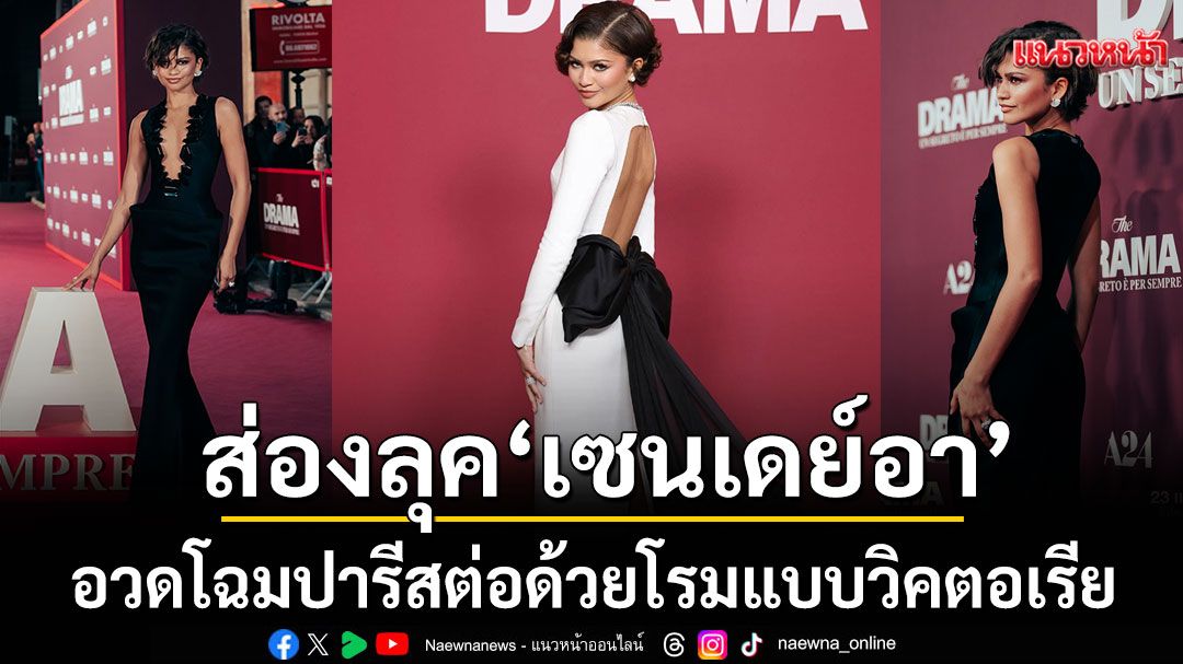 หลัง A24 จัดงานเปิดตัวรอบปฐมทัศน์โลก World Premiere ฉายภาพยนตร์รักตลกร้ายน่าจับตาแห่งปี The Drama แต่งก็บ้า..ดราม่าเบอร์นี้ ที่ลอสแอนเจลิส ไปเมื่อวันที่ 17 มีนาคม ที่ผ่านมา แต่ The Drama ยังคงไม่หยุดสร้างความน่าจับตาบนเวทีโลกเพียงเท่านี้ เพราะเมื่อสัปดาห์ที่ผ่านมา ในงานพรีเมียร์ ณ กรุงปารีส และ กรุงโรม เซนเดย์อา นักแสดงนำของเรื่องผู้รับบท เอ็มมา ทำให้ทุกสายตาต้องจับจ้องมาที่ตัวเธอด้วยบรรดาหลากชุดที่เธอใส่ไปร่วมงาน ภายใต้แรงบันดาลใจจากแนวคิดการแต่งงานในยุควิคตอเรียอย่าง “Something Old”, “Something New”, “Something Borrowed” และ “Something Blue” โดยได้สไตล์ลิสต์ประจำตัวอย่าง ลอว์ โรช คอยดูแล และมี โรเบิร์ต แพททินสัน นักแสดงนำผู้รับบท ชาร์ลี คอยเคียงข้างในทุก ๆ งาน
