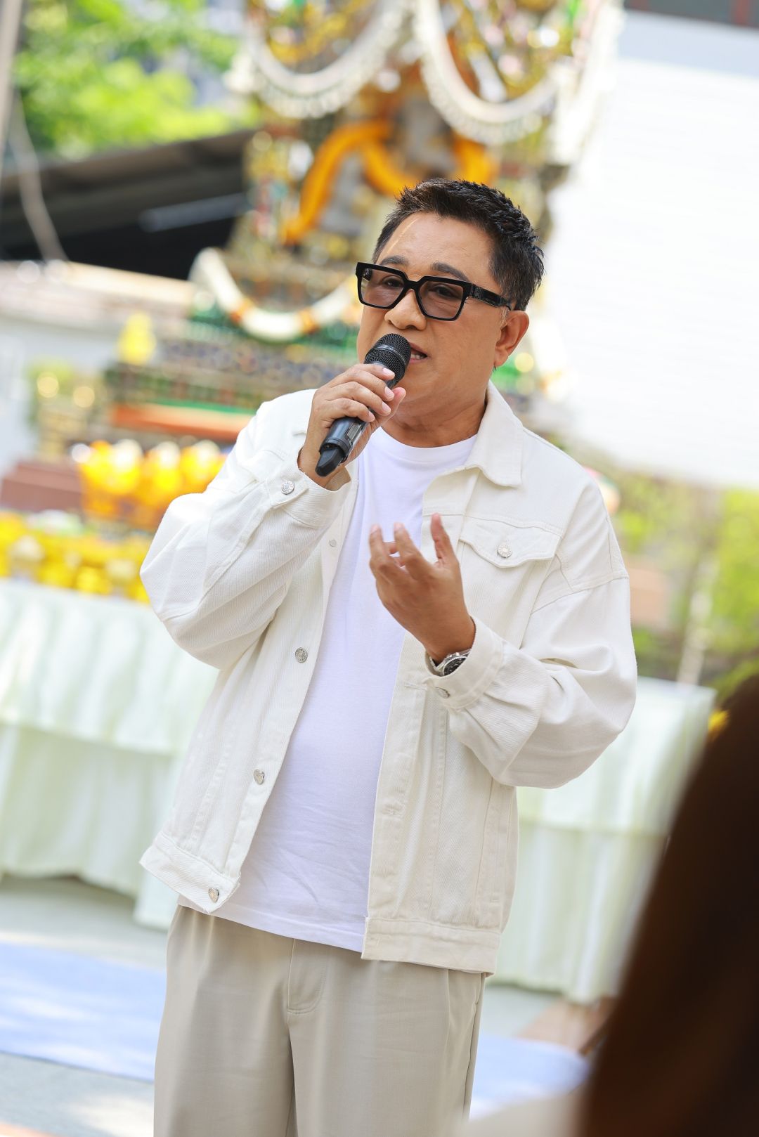 บี-กมลาสน์ เอียดศรีชาย จัดพิธีสักการะองค์พระพิฆเนศ ณ ช่อง 7HD เพื่อความเป็นสิริมงคล ให้รายการเดินหน้าประสบความสำเร็จต่อเนื่องบรรยากาศเต็มไปด้วยความคึกคัก โดยในพิธี “เอกชัย” ยังได้รำถวายมือบูชาครูมโนราห์ ศิลปะการแสดงพื้นบ้านภาคใต้ เพื่อแก้เหมรฺยถวายองค์พระพิฆเนศ ตามคำมั่นสัญญาที่เคยให้ไว้ พร้อมกันนี้ยังมี อ.อานนท์ หวานเพ็ชร์ อาจารย์ด้านนาฏศิลป์ศึกษา จากมหาวิทยาลัยราชภัฏพระนคร และเป็นลูกศิษย์ของเอกชัย ร่วมรำมโนราห์ถวายด้วย
