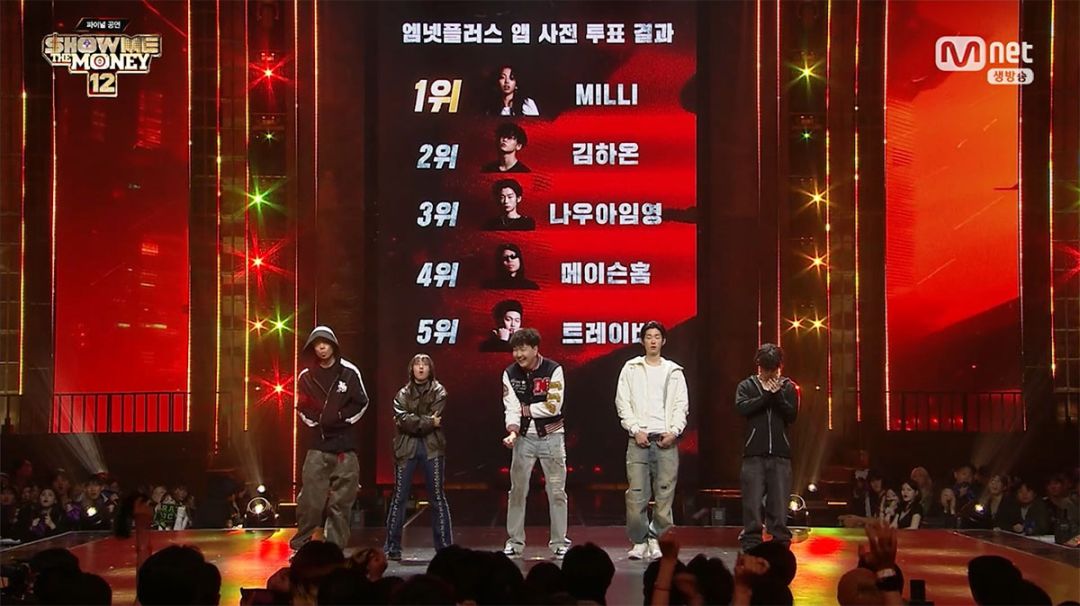 ทว่าท้ายที่สุด เมื่อรวมคะแนนจากการโหวตทุกช่องทาง MILLI คว้าอันดับที่ 4 Show Me The Money ซีซัน 12 ไปครองอย่างน่าภาคภูมิใจ