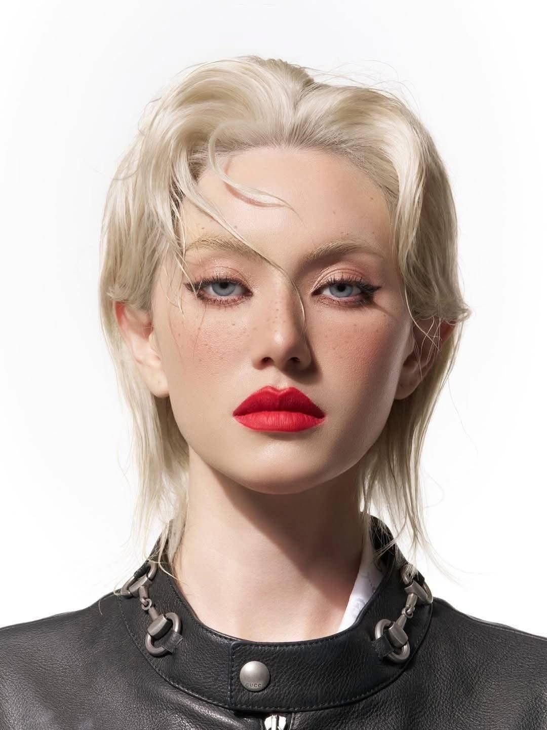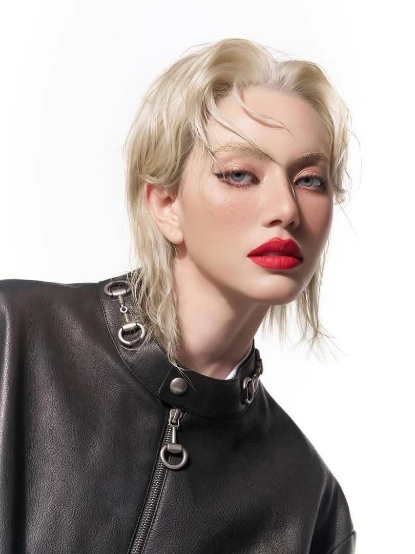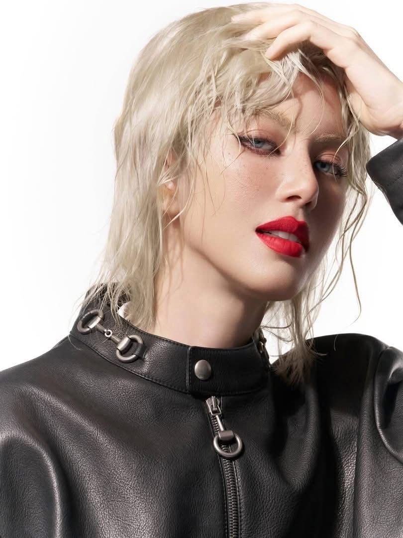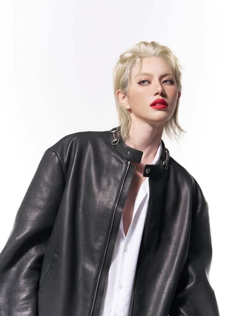ในภาพเซตนี้ ใหม่ ดาวิกา มาในลุคผมสั้นสีบลอนด์สว่าง เซตทรงแบบ Messy Hair ที่ให้ความรู้สึกดิบและเท่ ผสานกับการแต่งหน้าที่เน้นงานผิวและริมฝีปากสีแดงสด ตัดกับแจ็กเก็ตหนังสีดำตัวโคร่ง และเสื้อเชิ้ตสีขาวด้านใน เสริมความไฮเอนด์ด้วยดีเทลสร้อยคอโลหะที่คอเสื้อ บอกเลยว่าลุคนี้ "เท่สุดใจตัวจริง" และดูอินเตอร์แบบสุดๆด้วยโครงหน้าที่คมชัดและดวงตาที่เป็นเอกลักษณ์ ทำให้การแปลงโฉมครั้งนี้ดึงเสน่ห์ของความเป็น ลูกครึ่งไทย-เบลเยียม ออกมาได้อย่างเต็มพิกัด ไม่ว่าจะโพสต์ท่าไหนก็ดูเหมือนหลุดออกมาจากหน้าปกนิตยสารดนตรีระดับโลก หรือมิวสิกวิดีโอของศิลปินสากลแถวหน้า "ลุคนี้คือที่สุด! ใหม่ ดาวิกา พิสูจน์ให้เห็นแล้วว่าเธอคือ 'กิ้งก่าเปลี่ยนสี' แห่งวงการบันเทิงที่ไม่ว่าจะหยิบจับสไตล์ไหนก็เอาอยู่ทุกลุคจริงๆ"